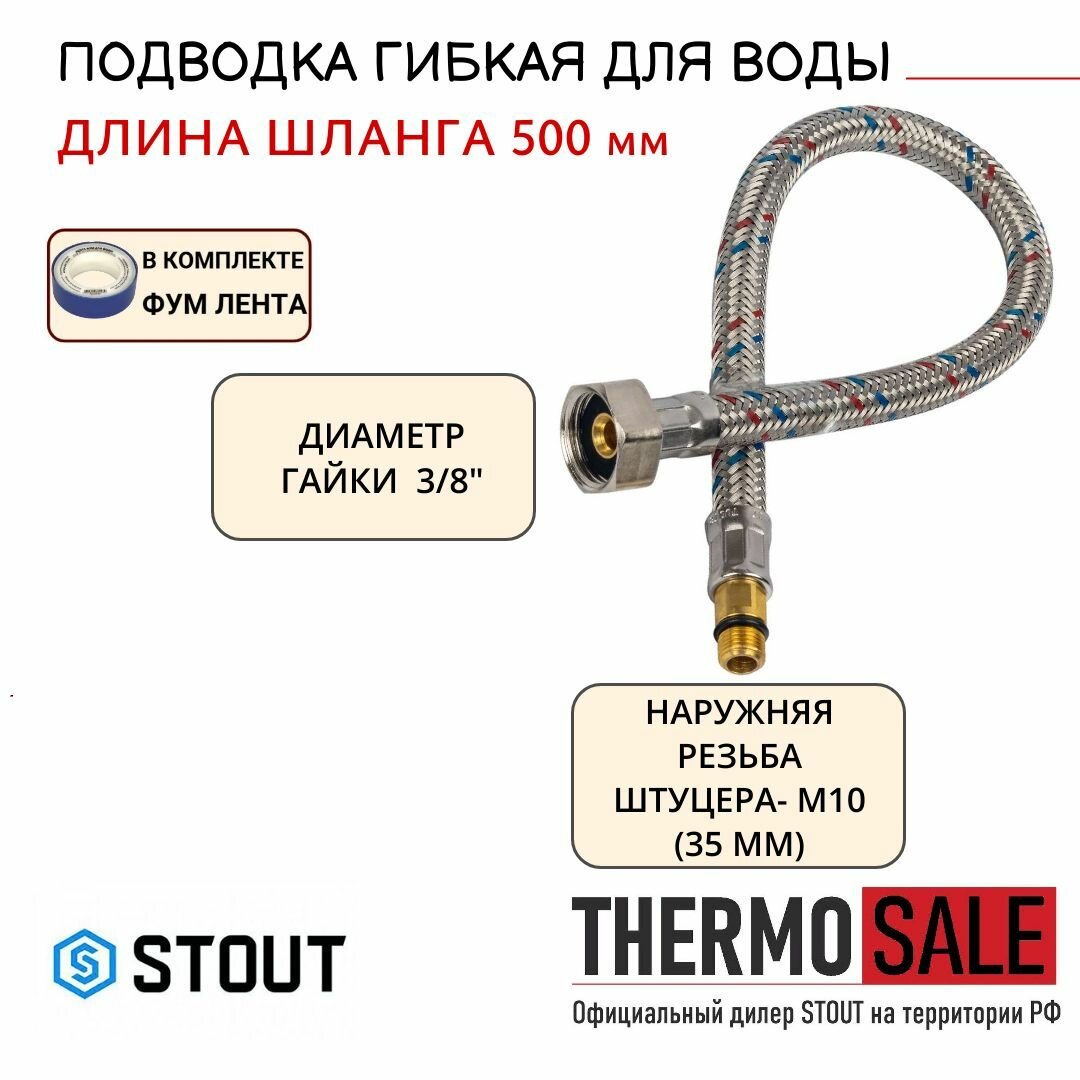 SHF-0036-351010 STOUT Гибкая подводка для воды M 10 (35мм) х ВР 3/8, длина 500 мм