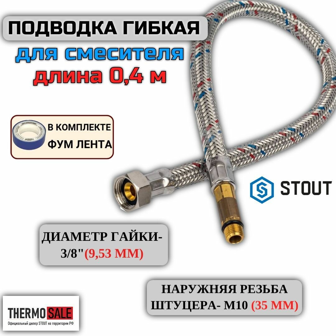 STOUT Гибкая подводка для воды M 10 35мм х ВР 3/8 длина 400 мм RG008P0SIFDS19