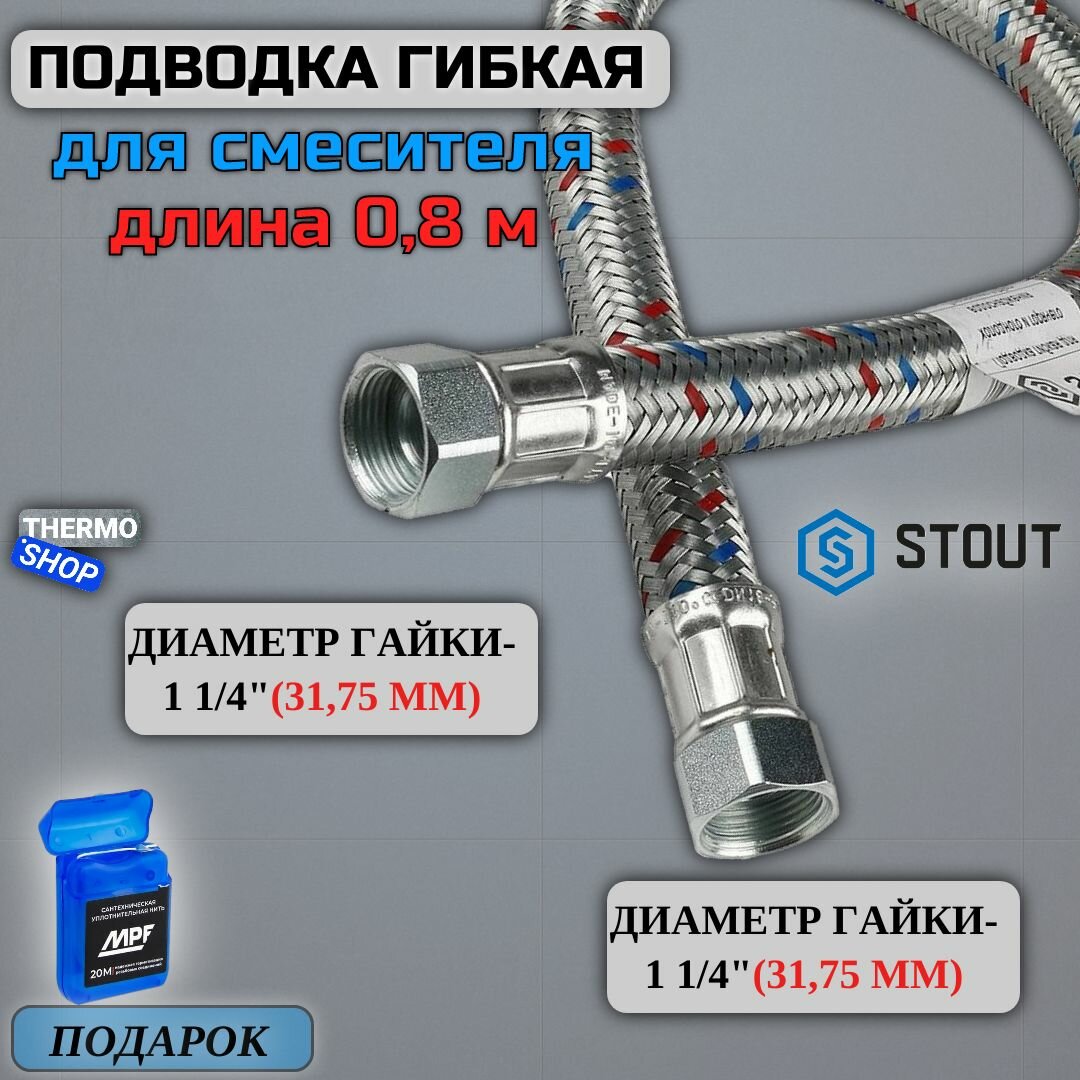 STOUT Гибкая подводка для воды ВР 1 1/4 х ВР 1 1/4 длина 800 мм RG008P0SN0LIAG
