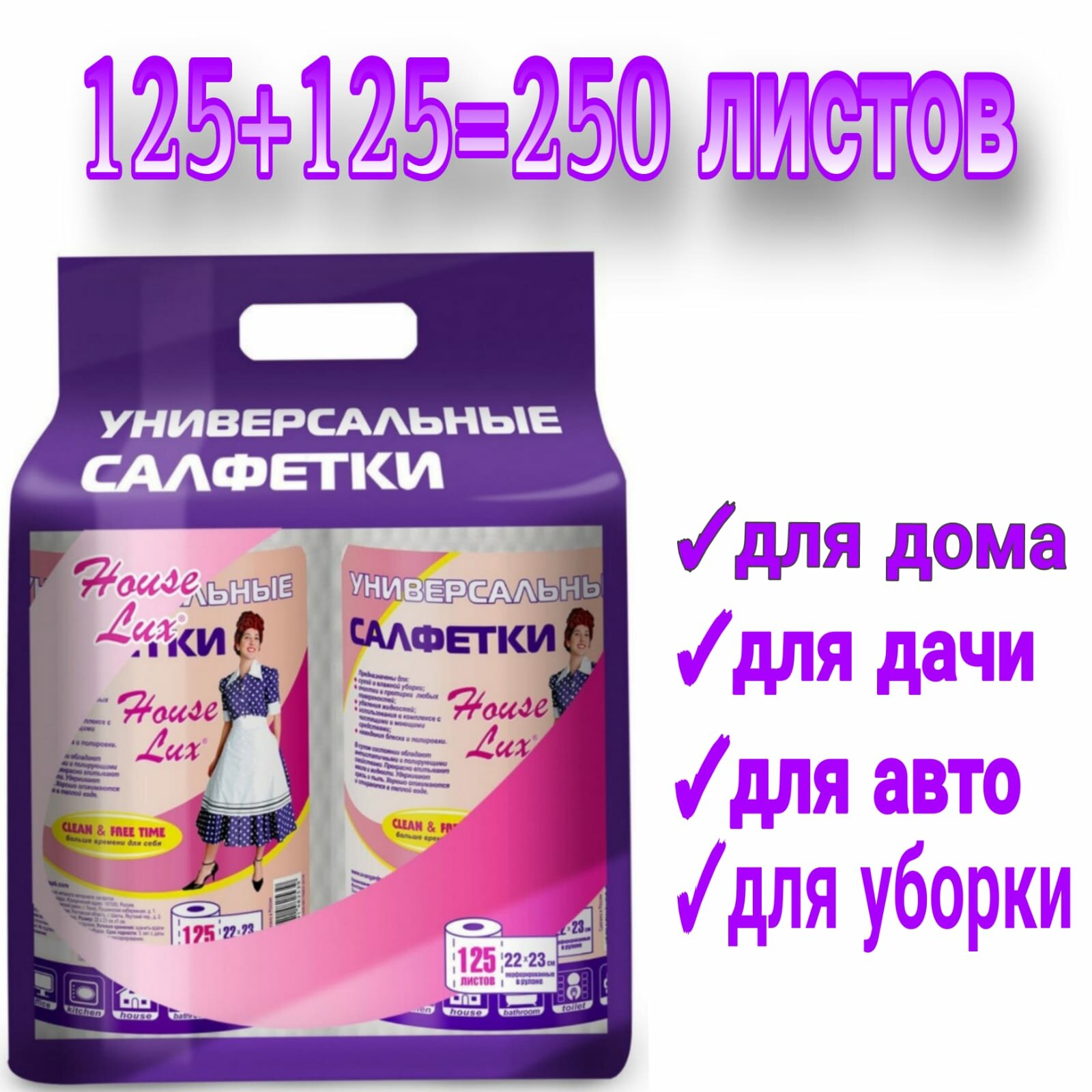 Универсальные салфетки House Lux, 2*125 листов в рулоне, 22*23 см.