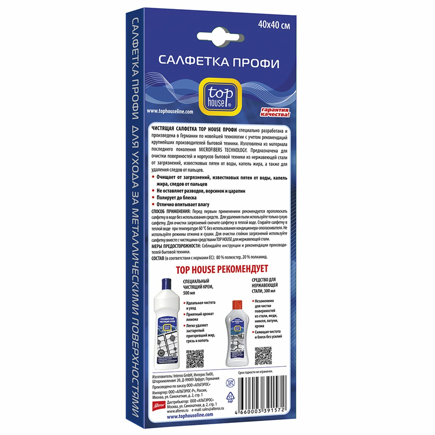Top house Салфетка для очистки нержавеющей стали Top House "Профи", 40 x 40 см
