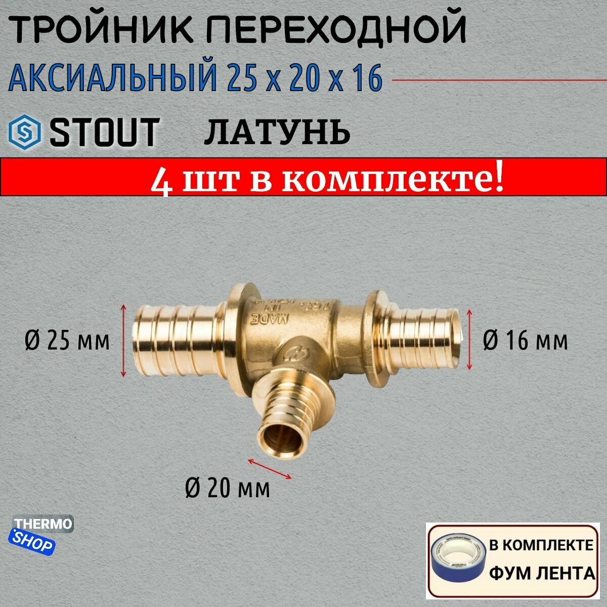 Тройник аксиальный переходной STOUT 20*16*20