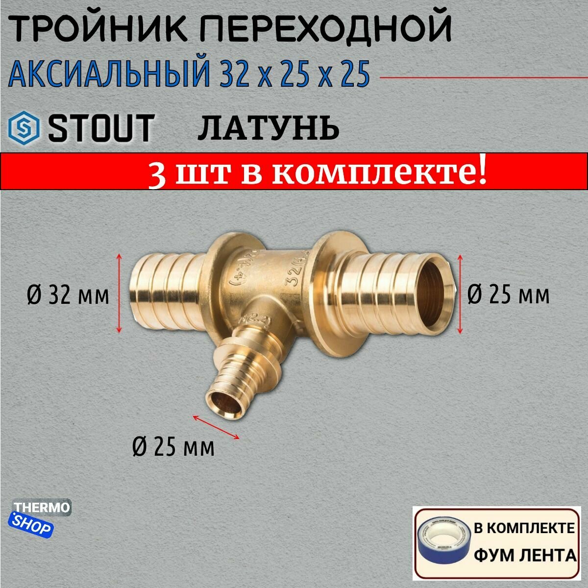 Купить Тройник переходной 32x25x25 для труб 3 шт из сшитого полиэтилена аксиальный ФУМ лента