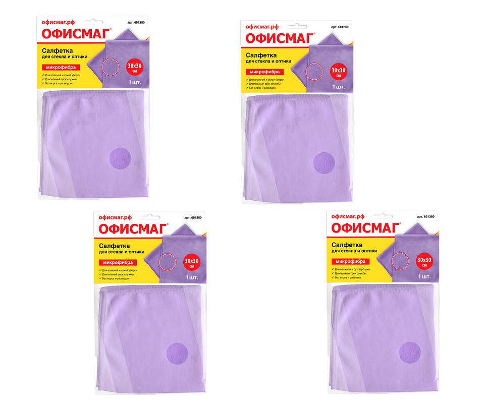 Салфетка для стекла и оптики, микрофибра, 30х30 см, фиолетовая, офисмаг, 601260 интересное: