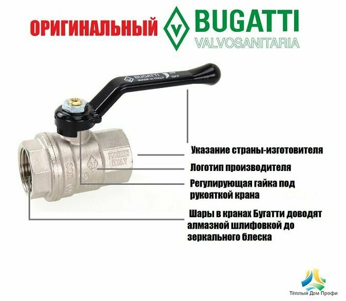 Кран шаровой Bugatti (3050080) НВ 1'1/4 ручка OREGON серия 305 полный проход