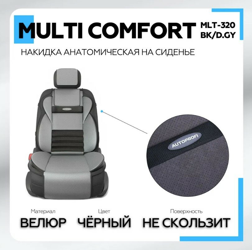 Накидка на сиденье анатомическая перед. Велюр серый Multi Comfort AUTOPROFI MLT-320 BK/D.GY