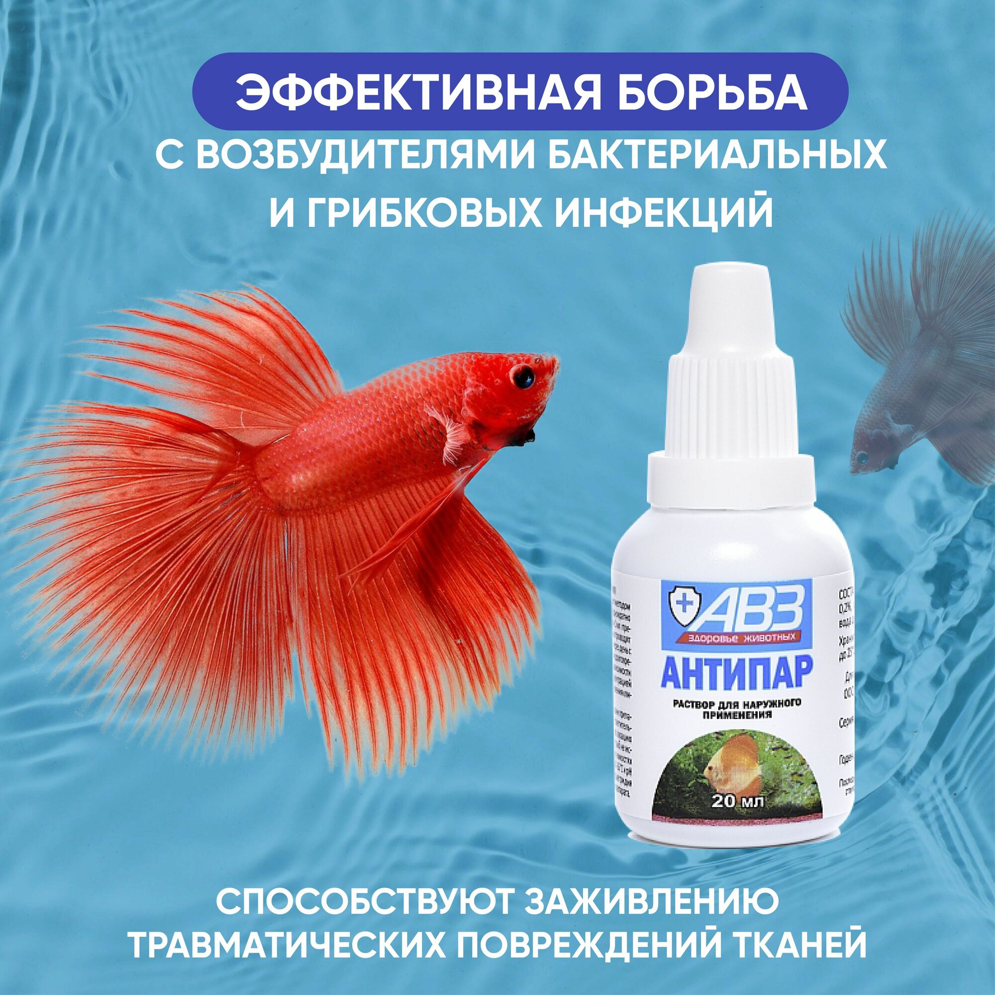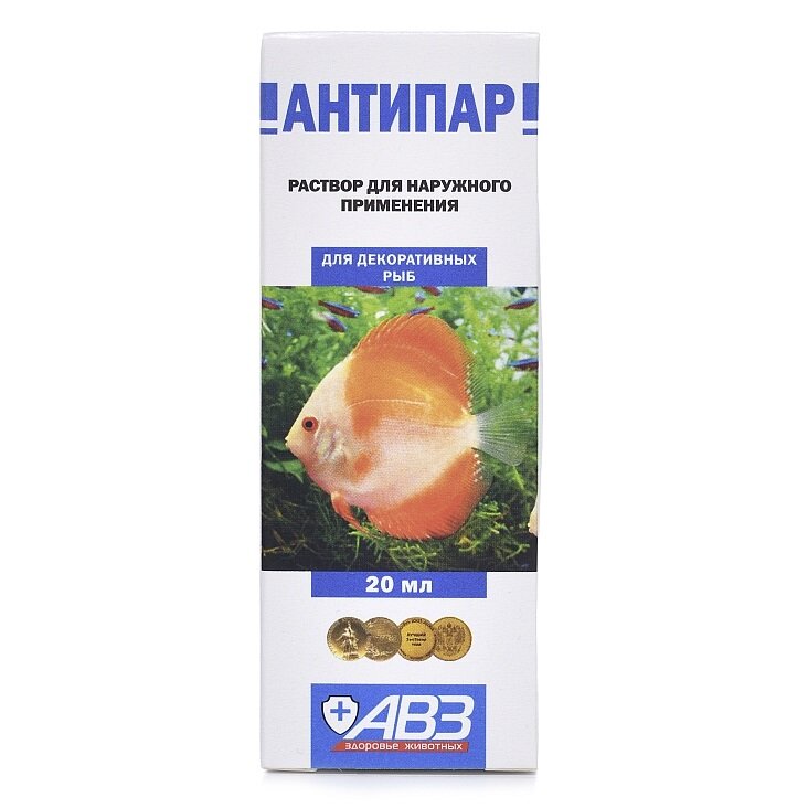 Лекарственный препарат Авз (агроветзащита) для наружной обработки аквариумных рыб,антисептический комбинированный, АВЗ Антипар, 20 мл