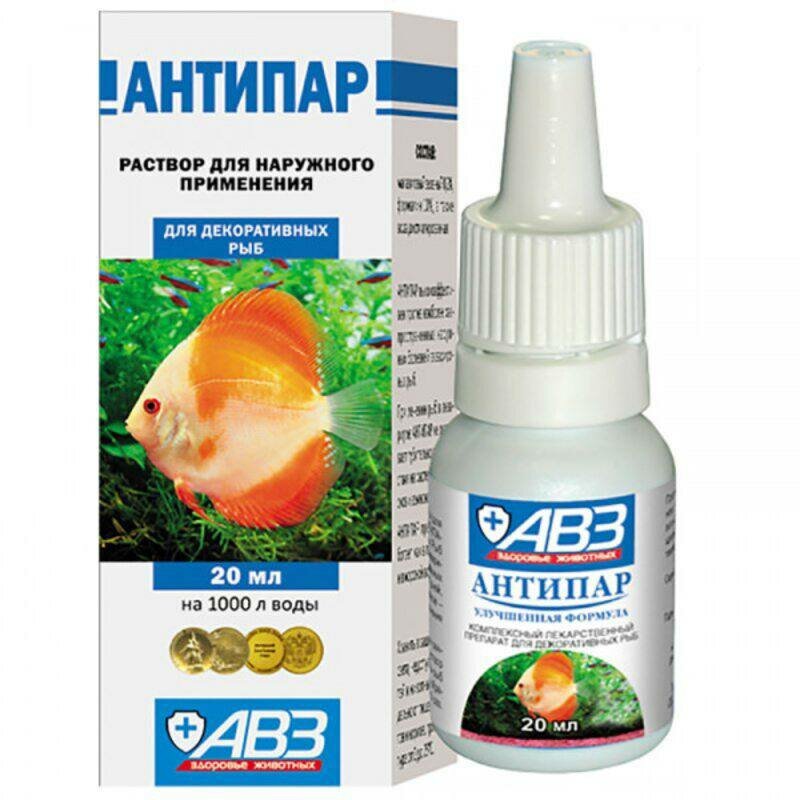 Авз Антипар для декоративных рыб лечение эктопаразитарных и инвазионных болезней 20 мл