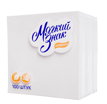 Салфетки бумажные Мягкий знак белые, 2 слоя, 24х24, 100 листов/уп.