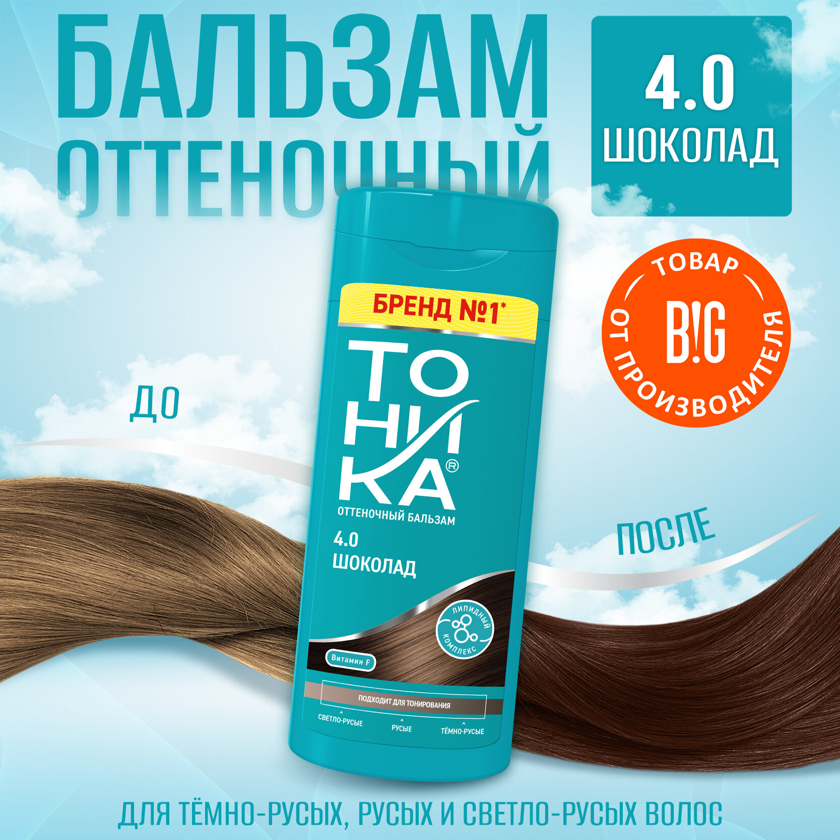 Тоника для светло-русых, темно-русых и русых волос, 4.0 шоколад, Шоколадный, 150 мл, 180 г