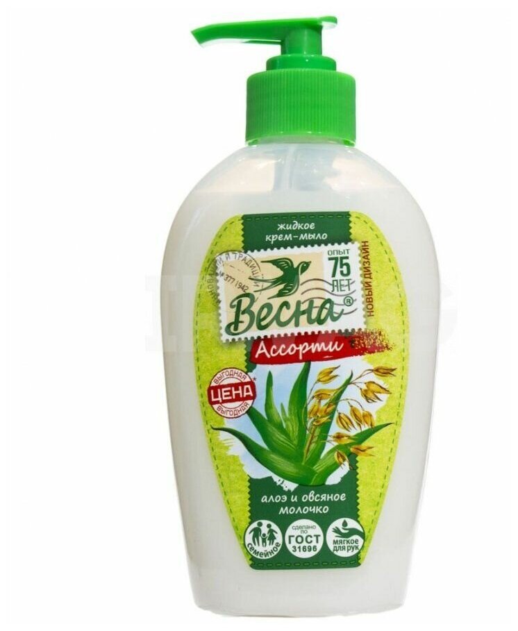 Купить Весна Крем-мыло жидкое Ассорти Алоэ и овсяное молочко алоэ и овсяное молочко, 15 уп., 280 мл, 280 г