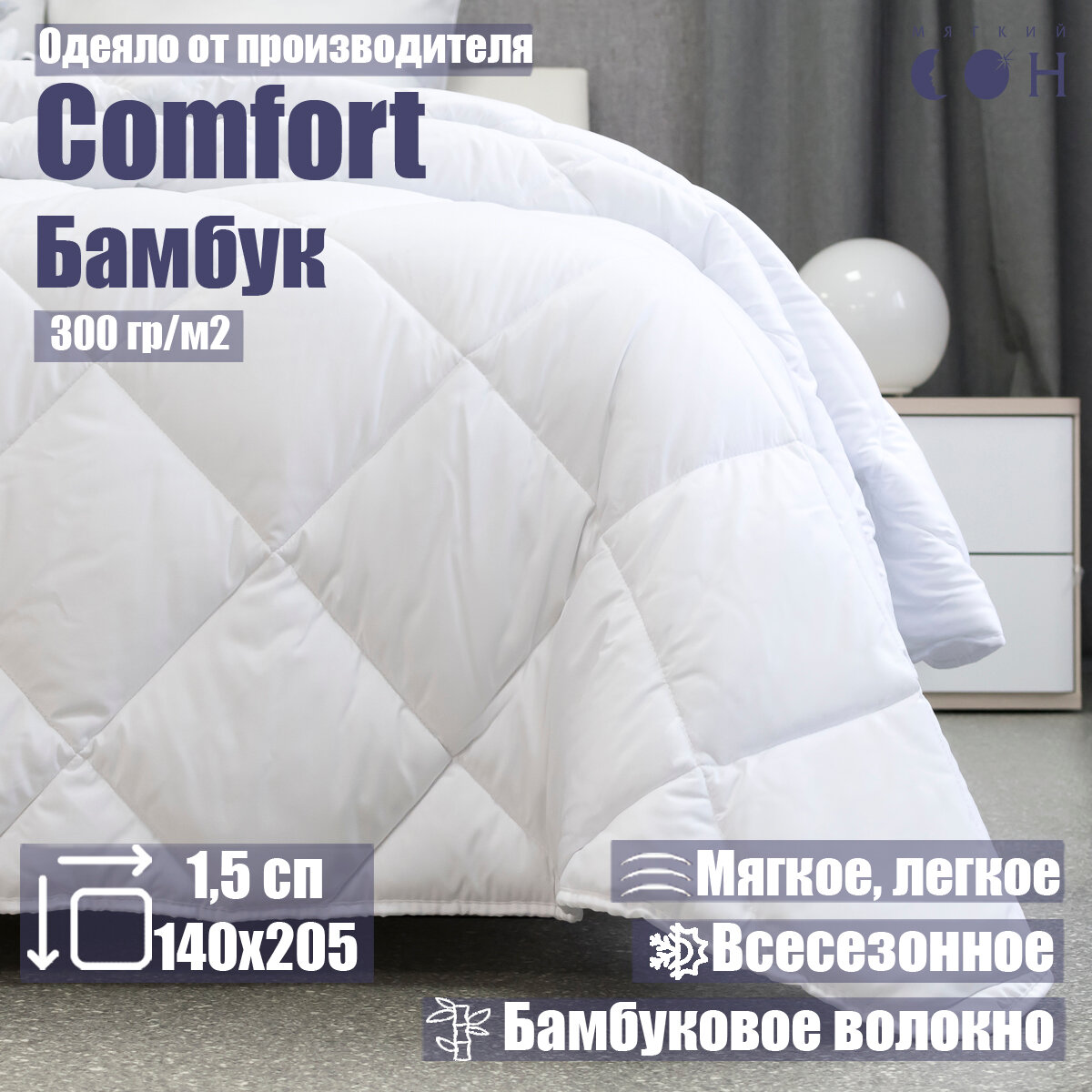 Одеяло демисезонное 1,5 спальное Мягкий Сон "Comfort" бамбуковое волокно всесезонное 140х205 / Подарок на Новый год