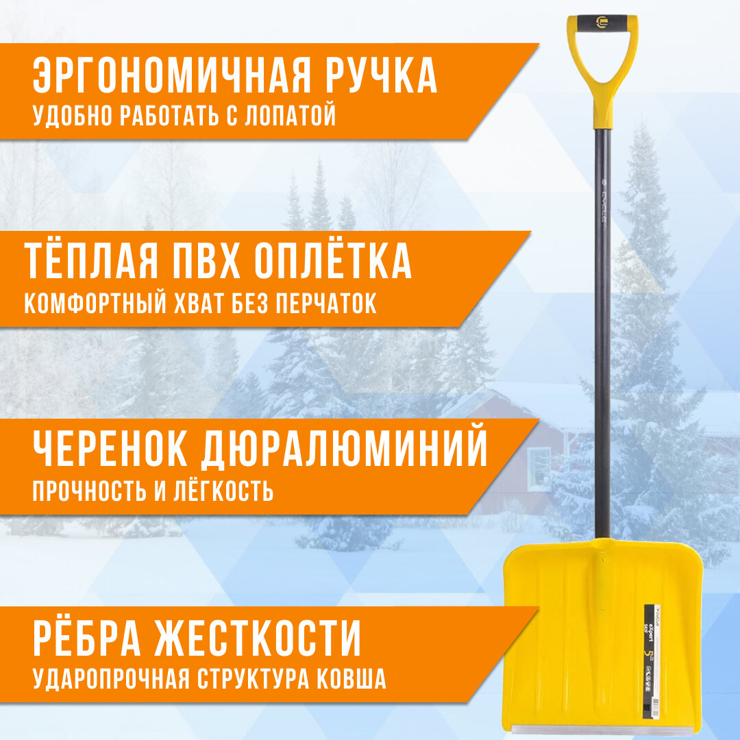 Лопата для уборки снега Cycle Expert Скиф, с алюминиевым черенком, 380 x 365 мм