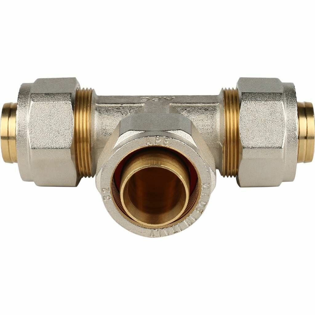 Тройник равнопроходный 32x32x32 для металлопластиковых труб винтовой в комплекте шт