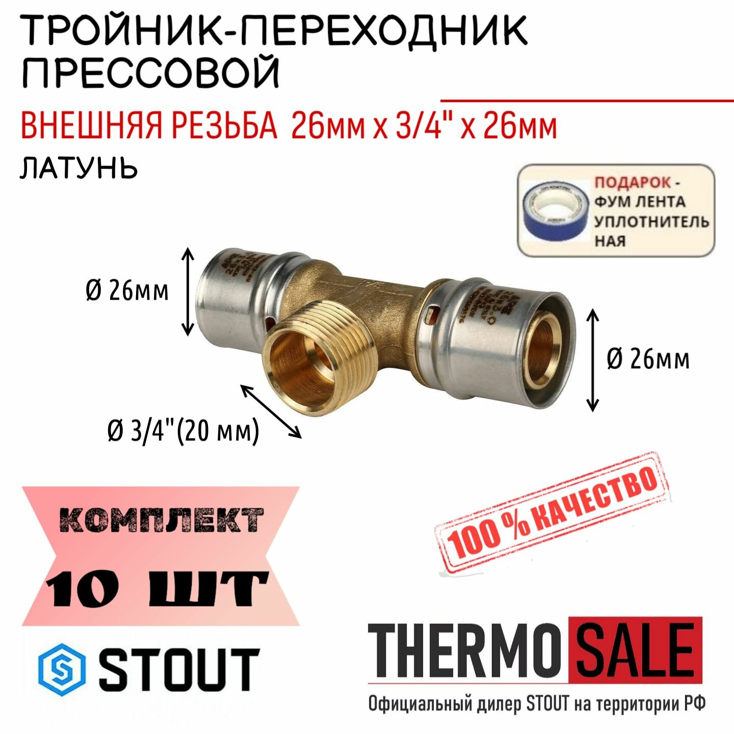 Купить Тройник-переходник с НР 26х3/4"х26 10 шт для металлопластиковых труб прессовой
