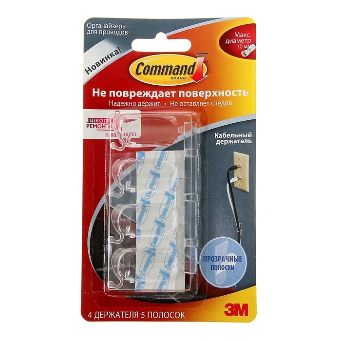 Держатель для проводов и гирлянд COMMAND 17301CLR прозрачный 4 шт./5 полосок