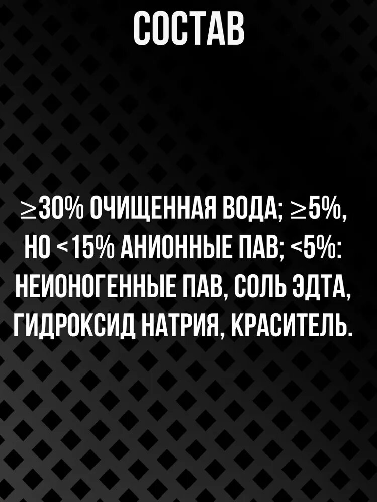 | Плюсы: | Пена густая, долго держится, хорошо отъедает грязь, небольшой расход |