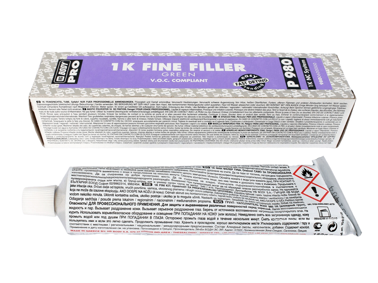 Шпатлевка HB Body P980 NITRO однокомпонентная мелкозернистая зеленая, 0,15 кг