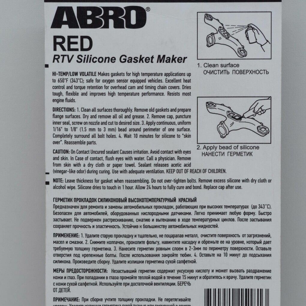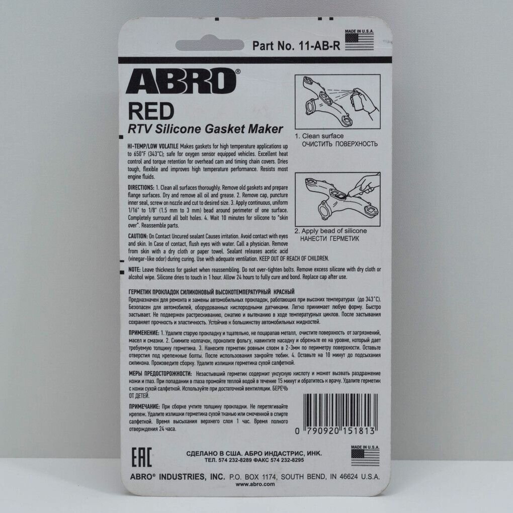 Герметик Силиконовый Красный 42,5 Г (Производство Сша) Abro 11-Ab-42-R ABRO арт. 11-AB-42-R