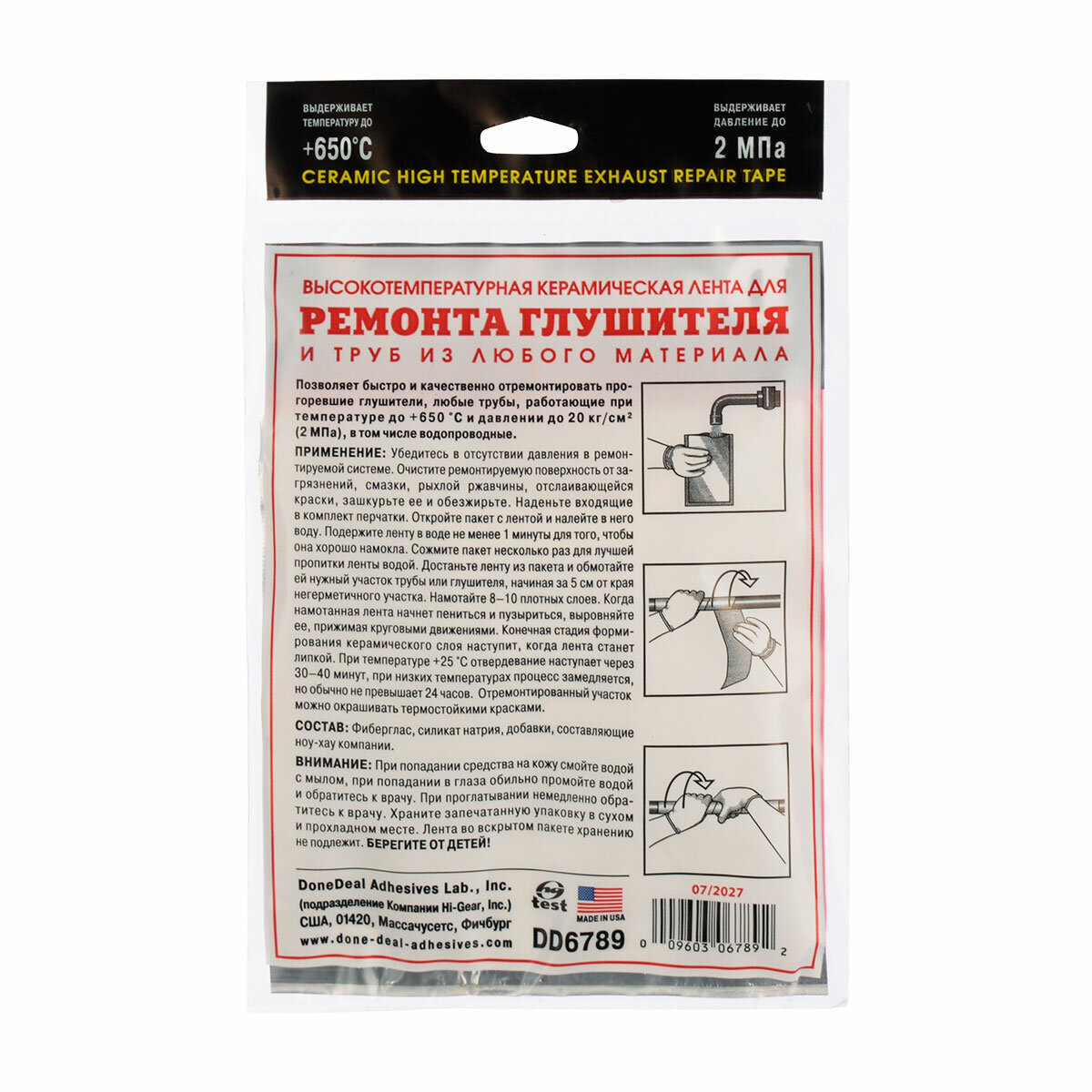 Лента для ремонта глушителя DoneDeal Ceramic High Temperature Exhaust Repair Tape, керамическая, термостойкая, лента 5х101см, арт. DD6789