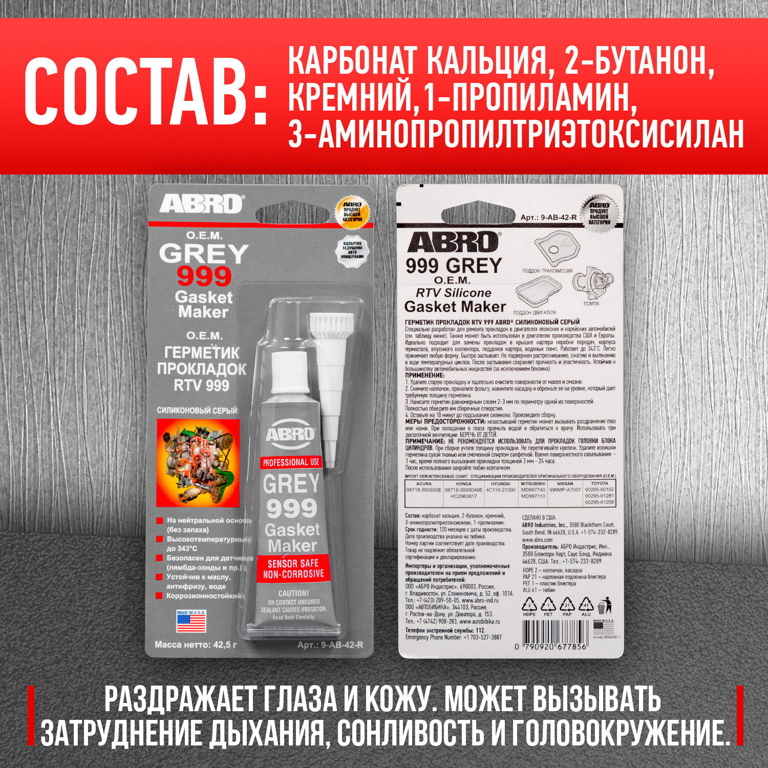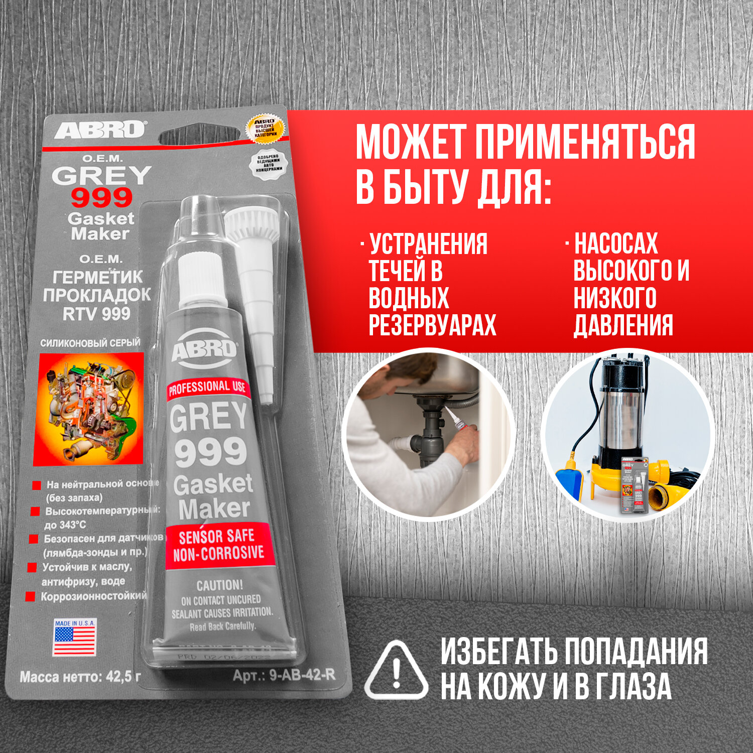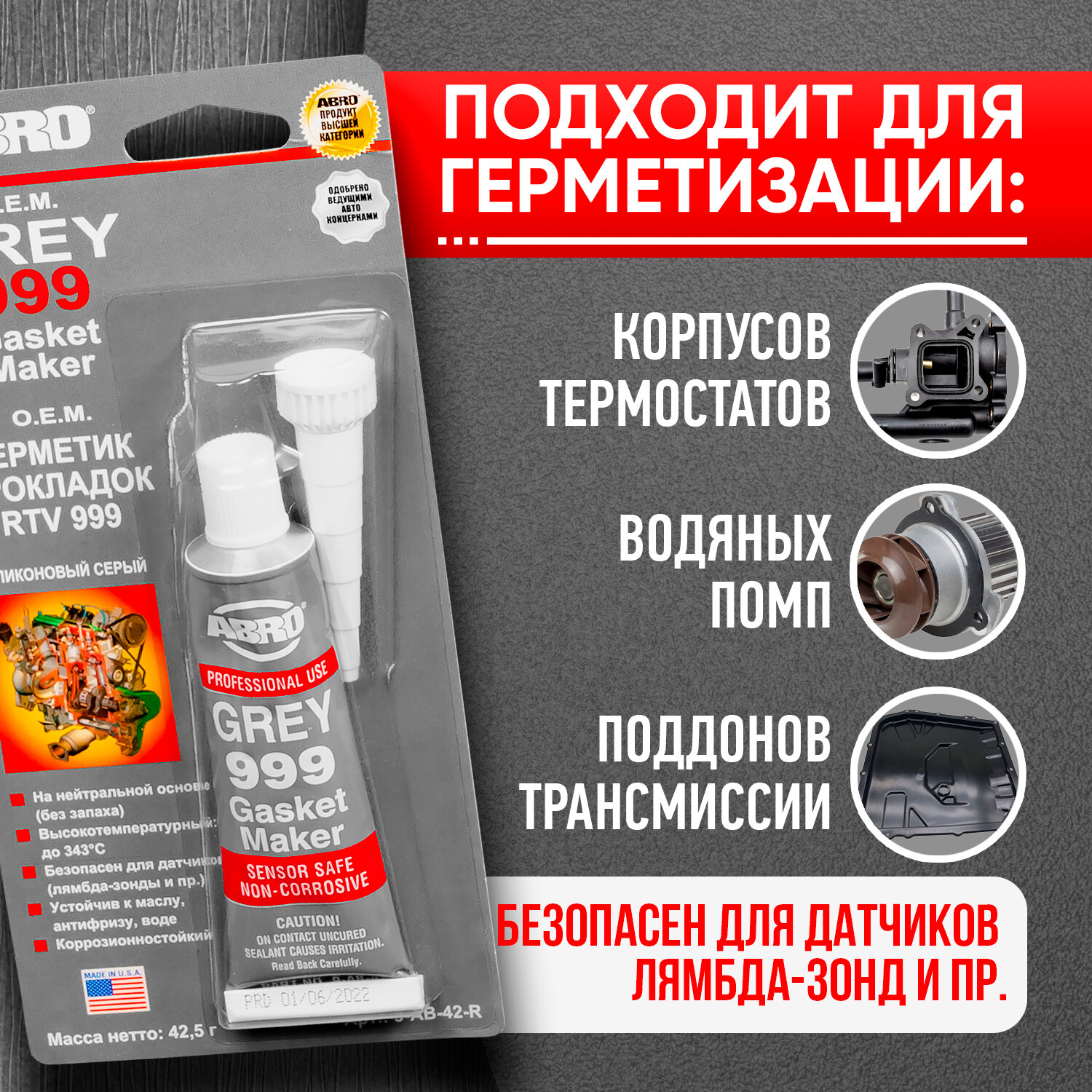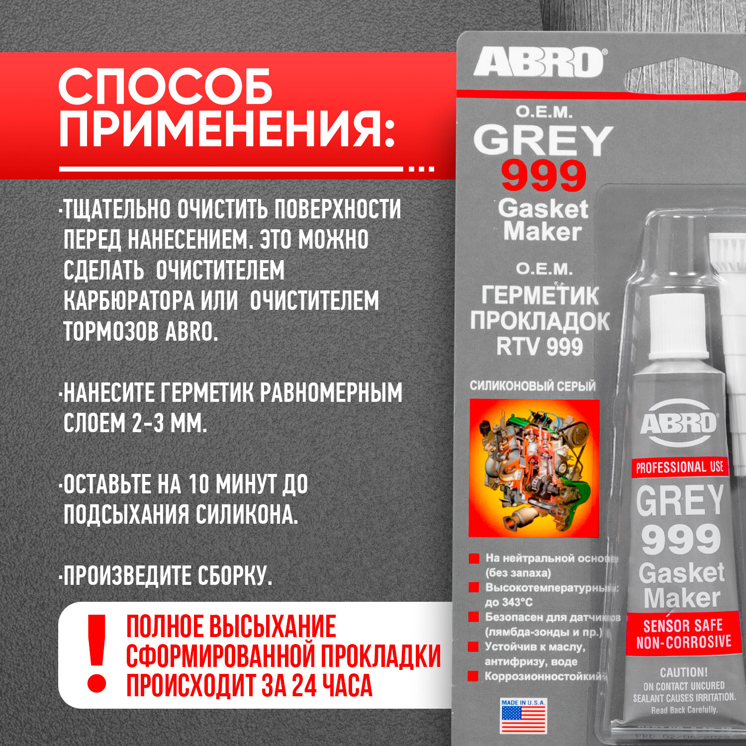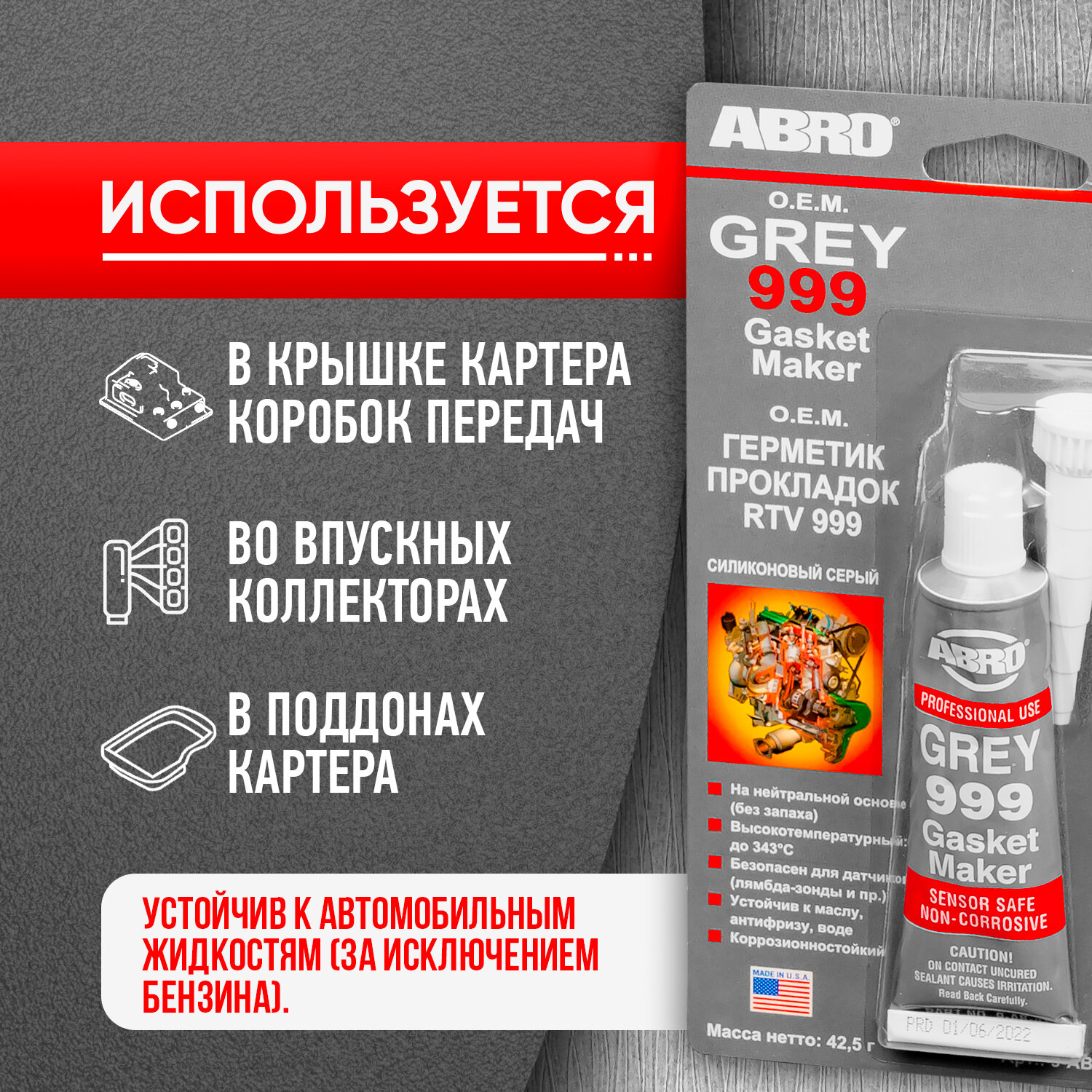 СохранитьГерметик прокладок 999 силиконовый серый 42,5 г ABRO интересное: