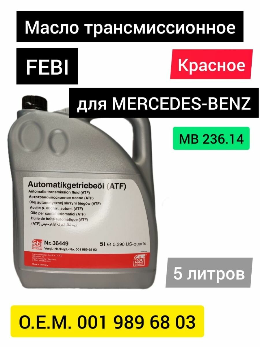 Febi bilstein atf для mercedes-benz 236.14 (красное) 5 л (36449)