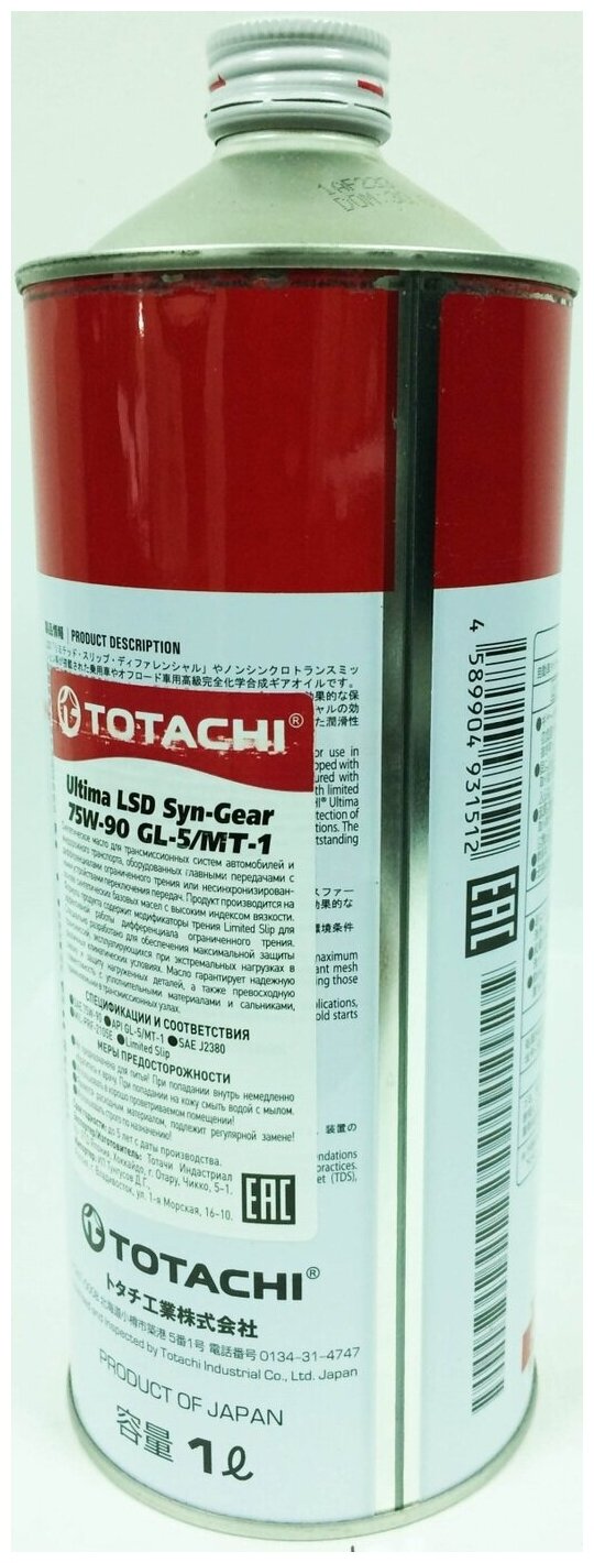 Масло Трансмиссионное Totachi Ultima Lsd Syn-Gear 75w-90 Gl-5 1л (4589904931512) G3301 TOTACHI арт. G3301