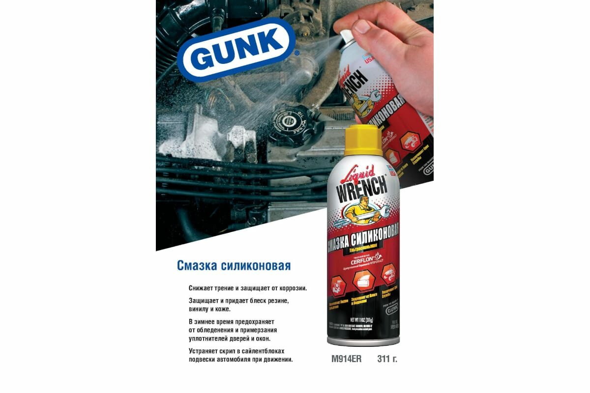 GUNK M914 смазка силиконовая аэрозоль (GUNK) (311 Г) интересное:
