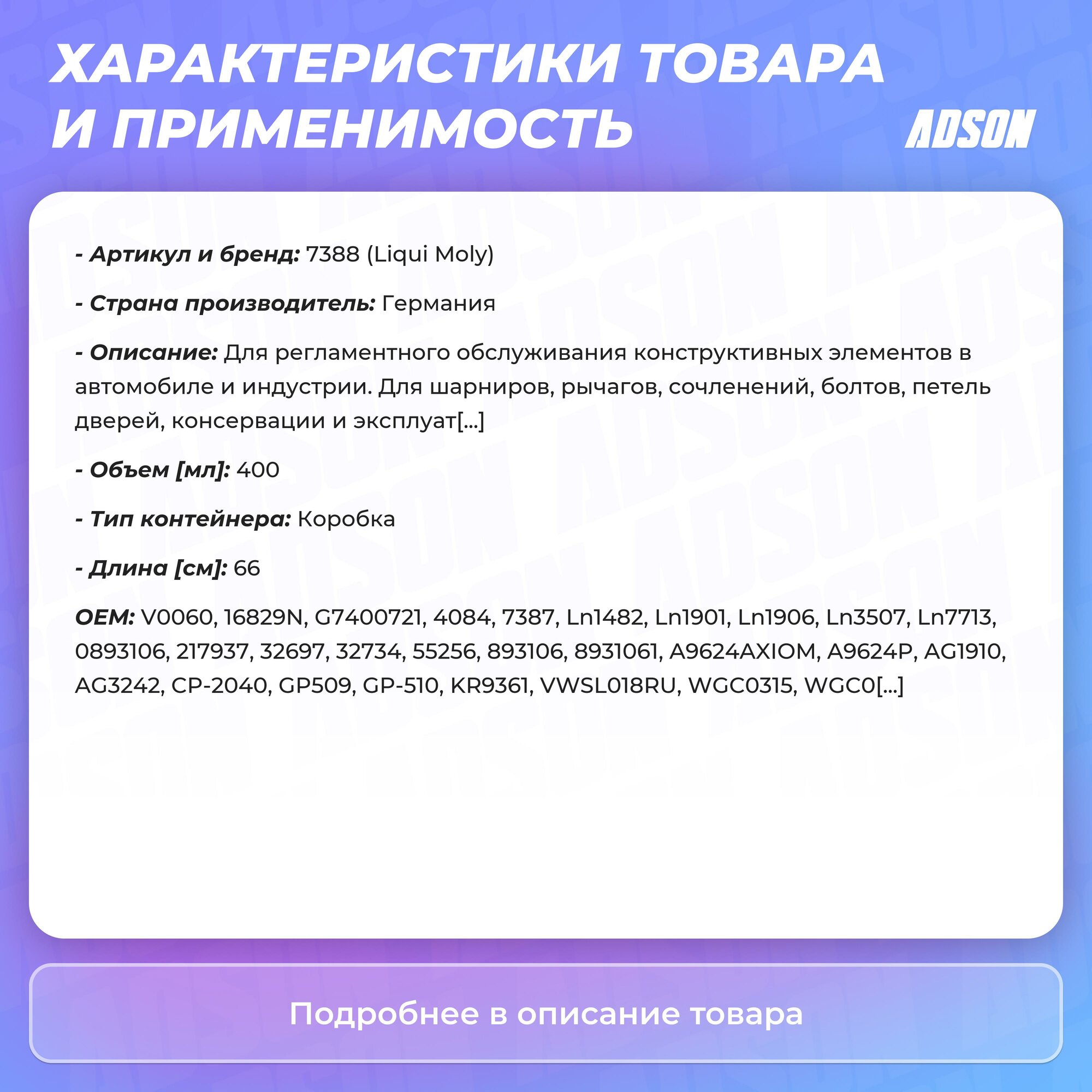 Сохранить7388 LiquiMoly Адгезийная смазка-спрей Pro-Line Haftschmier Spray (0,4л) LIQUI MOLY 7388 интересное: