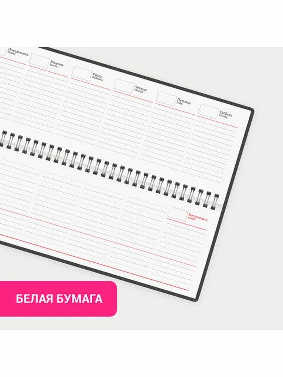 Планинг (ежедневник-планер), записная книжка, блокнот недатированный настольный горизонтальный (305x140 мм) Brauberg балакрон, 60 л., розовый, 111697