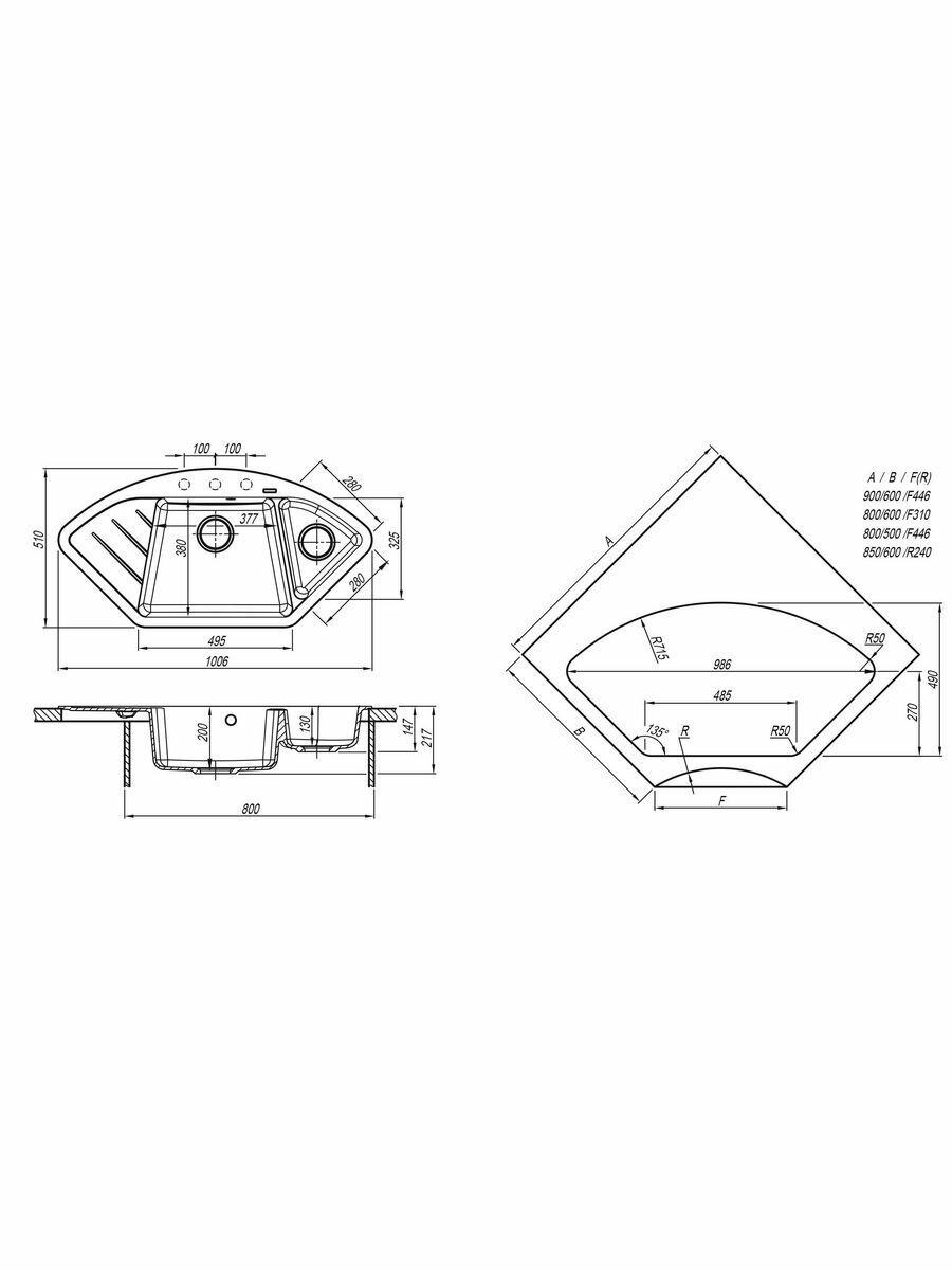 Мойка кухонная угловая Флорентина Веста Жасмин (20.285.E1005.201)