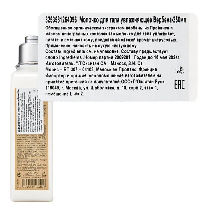 Увлажняющее молочко для тела с экстрактом вербены L'Occitane Verbena Body Lotion 250 мл . интересное: