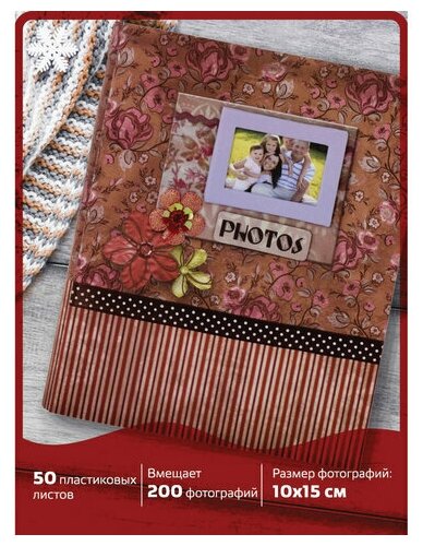 Brauberg Фотоальбом на 200 фотографий 10х15 см, твердая обложка, ""Семья"", красно-коричневый, 39067 .
