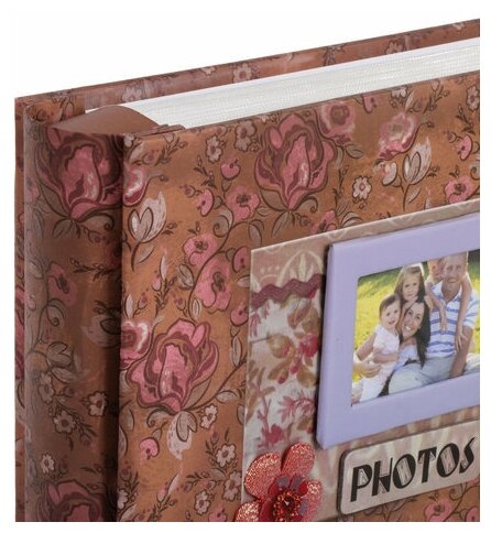 Фотоальбом семейный/свадебный/детский "Семья" на 200 фотографий 10x15см, твердая обложка, книжний переплет, бумажные листы с карманами, красно-коричневый, Brauberg