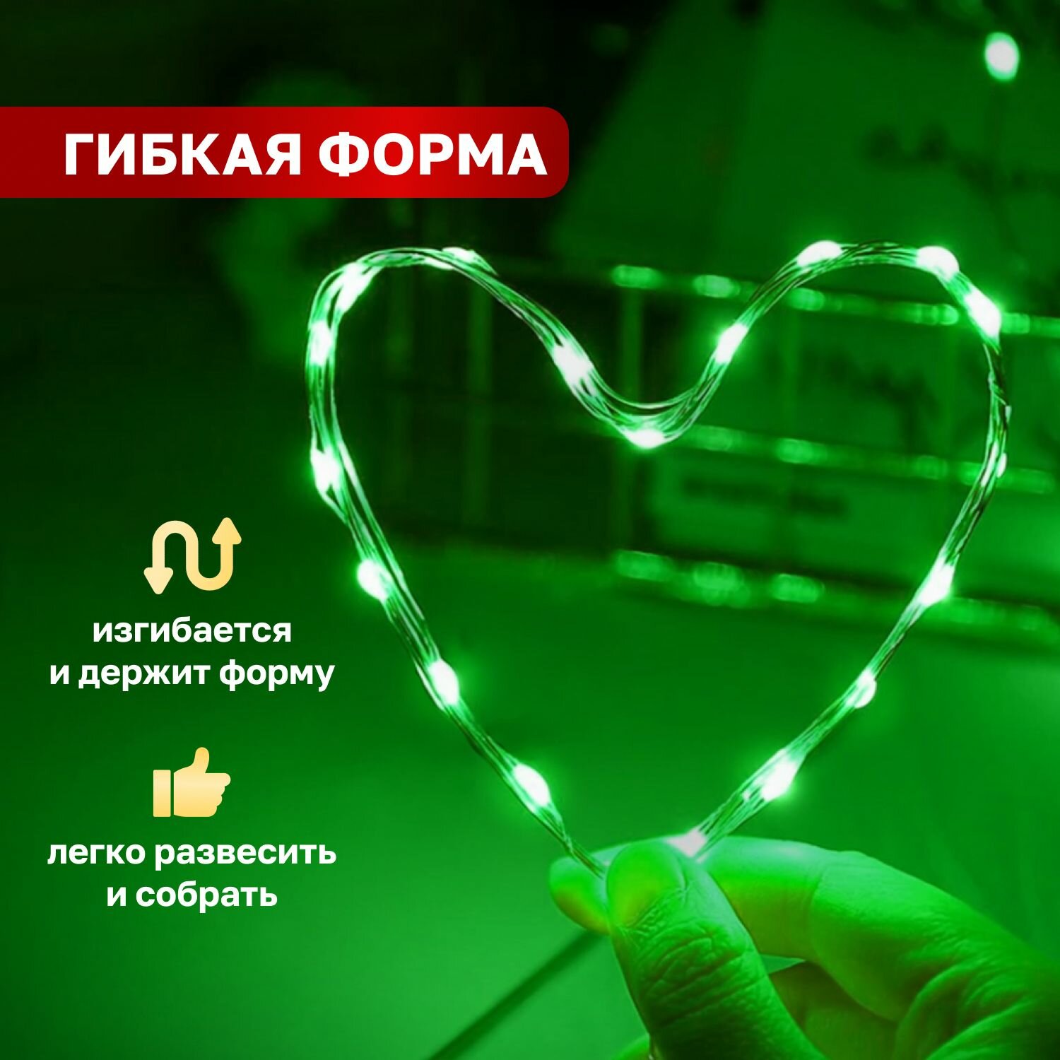 Светодиодная влагозащищенная гирлянда Роса Neon-Night 2 м, зеленое свечение/ новогодние товары гирлянды / новогодняя распродажа / новогодние скидки / новогодние подарки