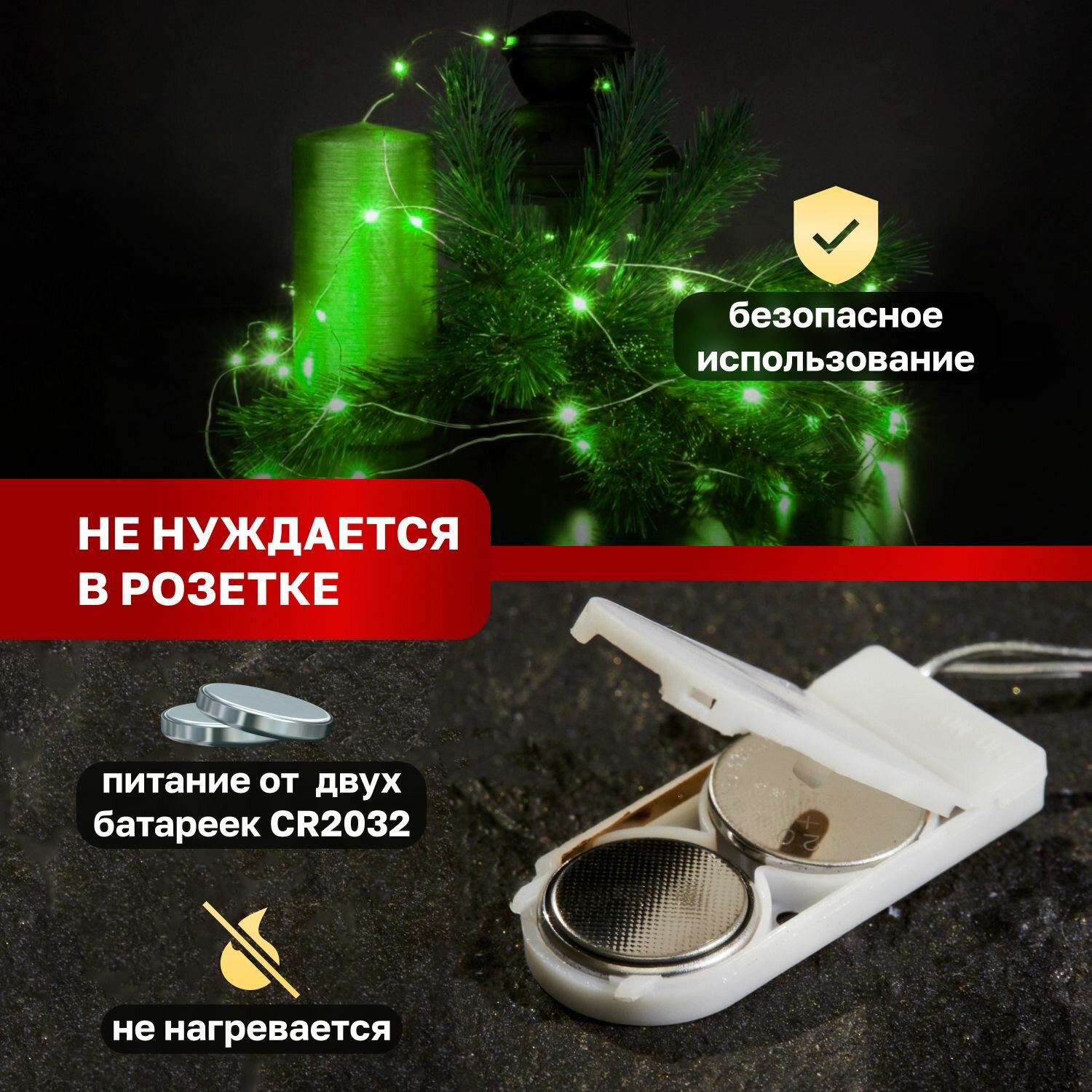 Гирлянда светодиодная Роса 2м, 20LED, бирюзовый, IP20, тонкий батарейный блок, 2хCR2032 в комплекте NEON-NIGHT