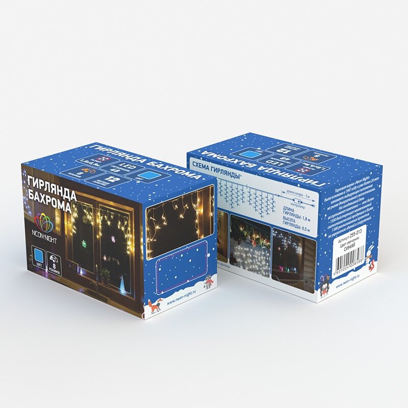 Гирлянда Neon-Night Айсикл, бахрома, 1,8х0,5м, 220В, разные режимы свечения, синий цвет, IP20