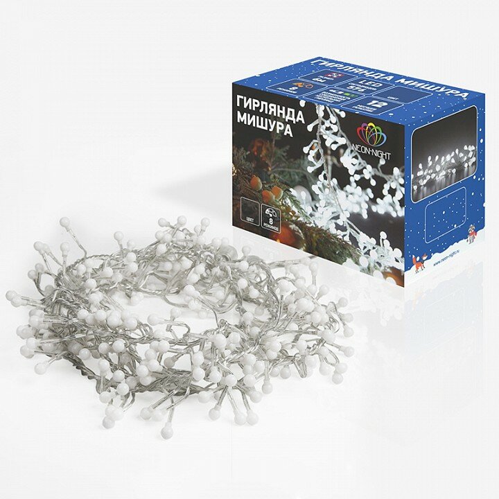 Гирлянда Neon-Night 303-615 Мишура LED 6 м прозрачный ПВХ 576 диодов цвет белый