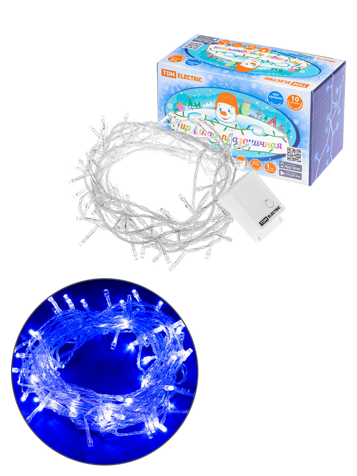 Гирлянда TDM СГ100Г10, 10м, 220В, разные режимы свечения, голубой цвет, IP20