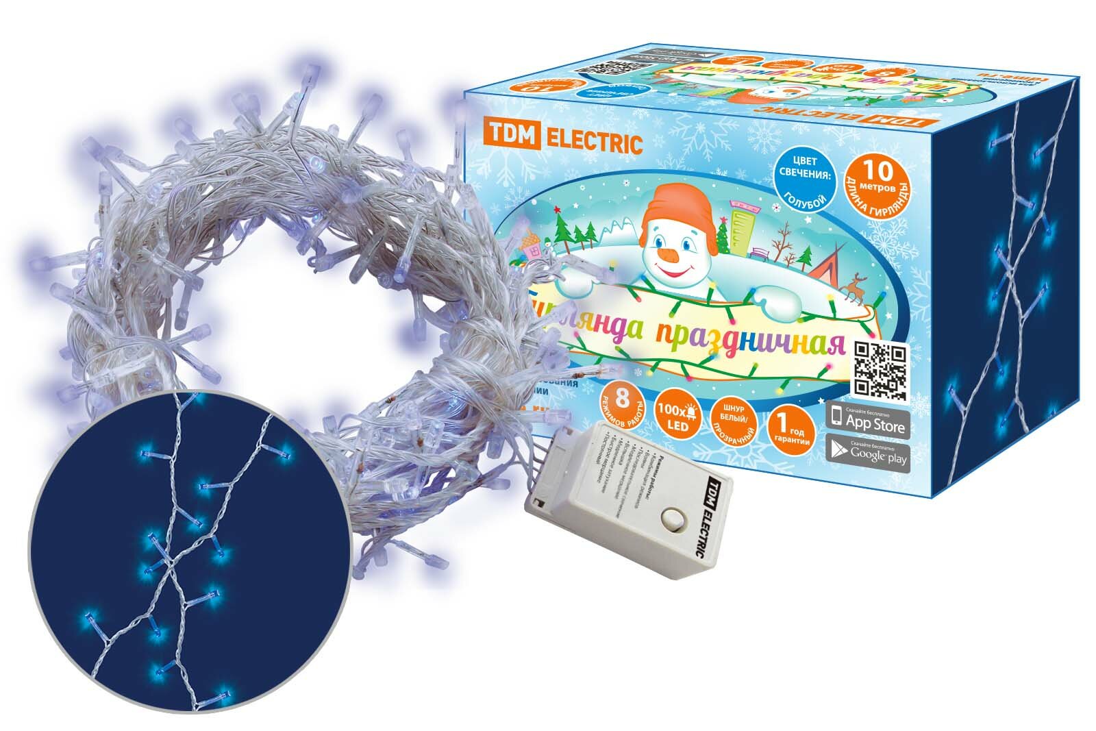 Гирлянда светодиодная TDM СГ100Г10, голубая, 10м, 8 режимов, 250 В