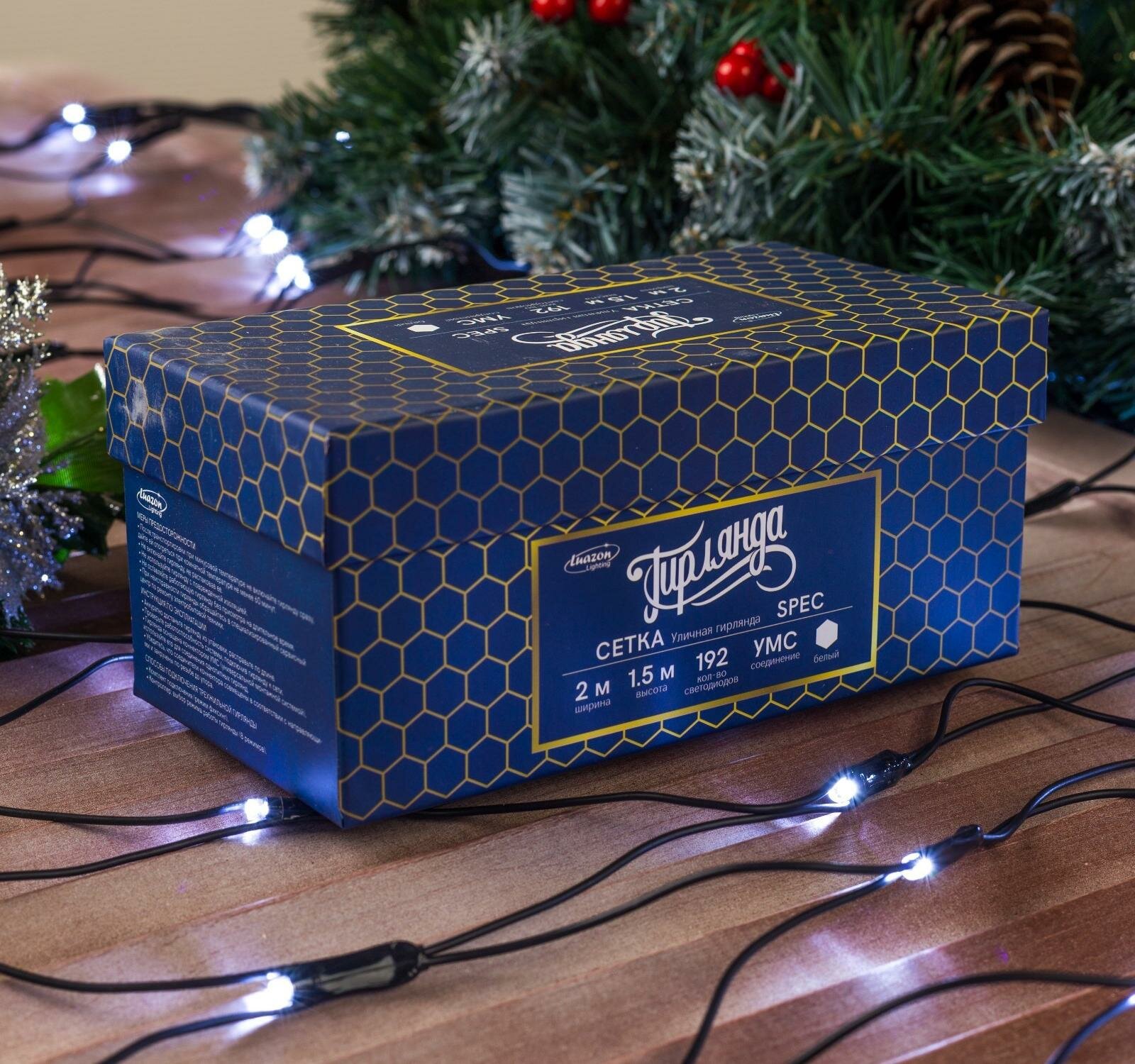 Гирлянда Luazon Lighting Spec Сетка, 3 х 3 х 2 м, 2 х 3 м, 384 лампы, теплый белый/прозрачный провод