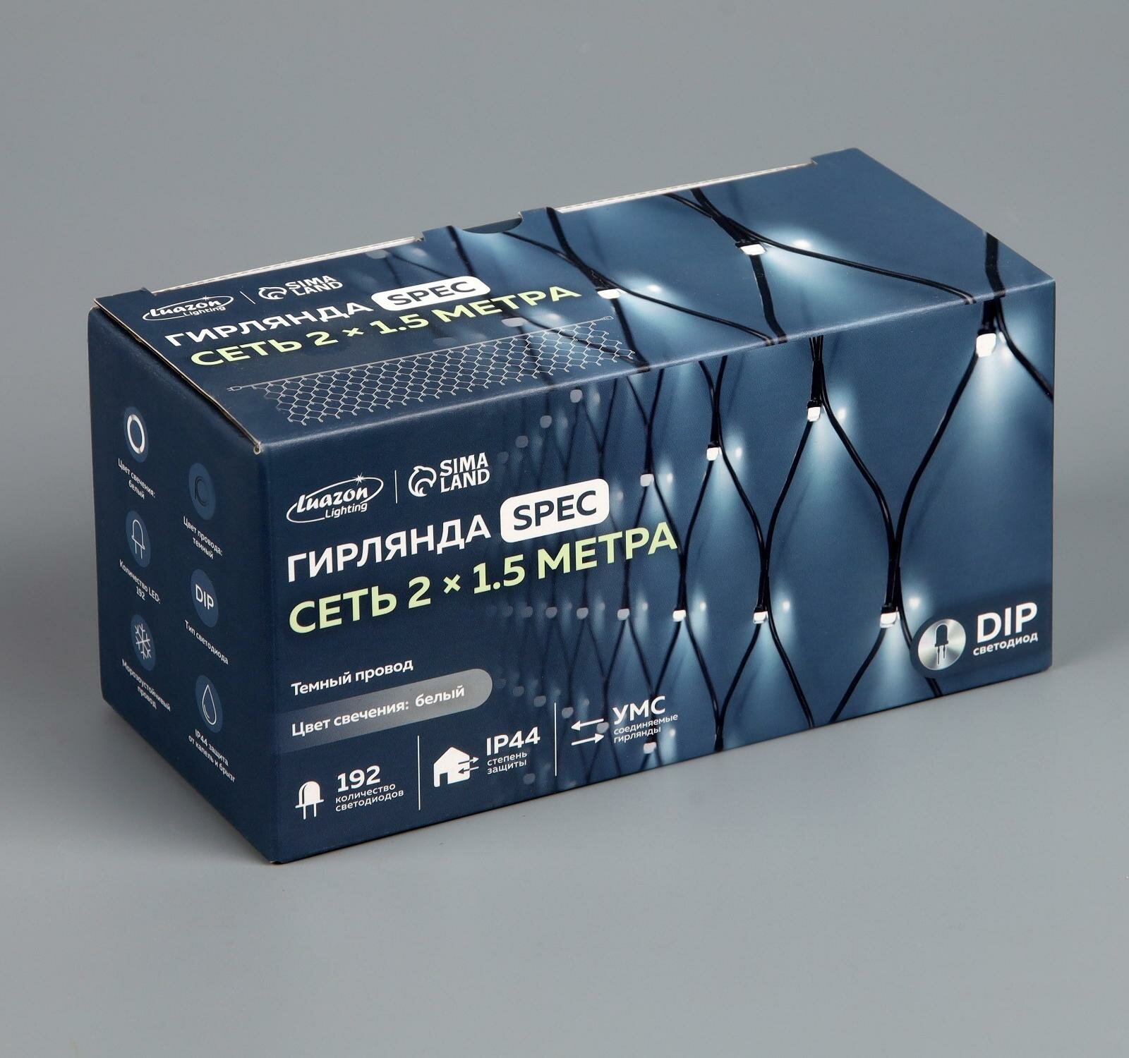 Купить Luazon Lighting Гирлянда «Сеть» 2 × 1.5 м, IP44, УМС, тёмная нить, 192 LED, свечение белое, 220 В