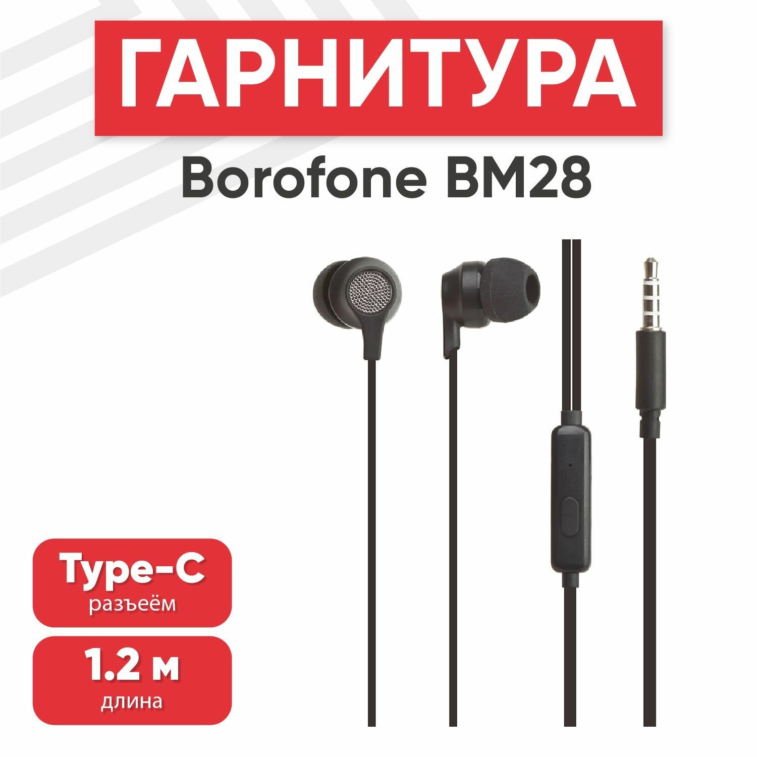 Гарнитура BOROFONE BM28 Tender Sound 3.5 мм, вставная, 1.2м (черный)