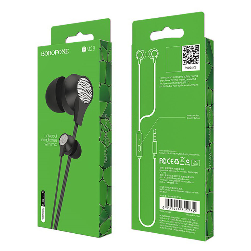 Гарнитура внутриканальная Borofone BM28 Tender sound universal earphones with mic, black