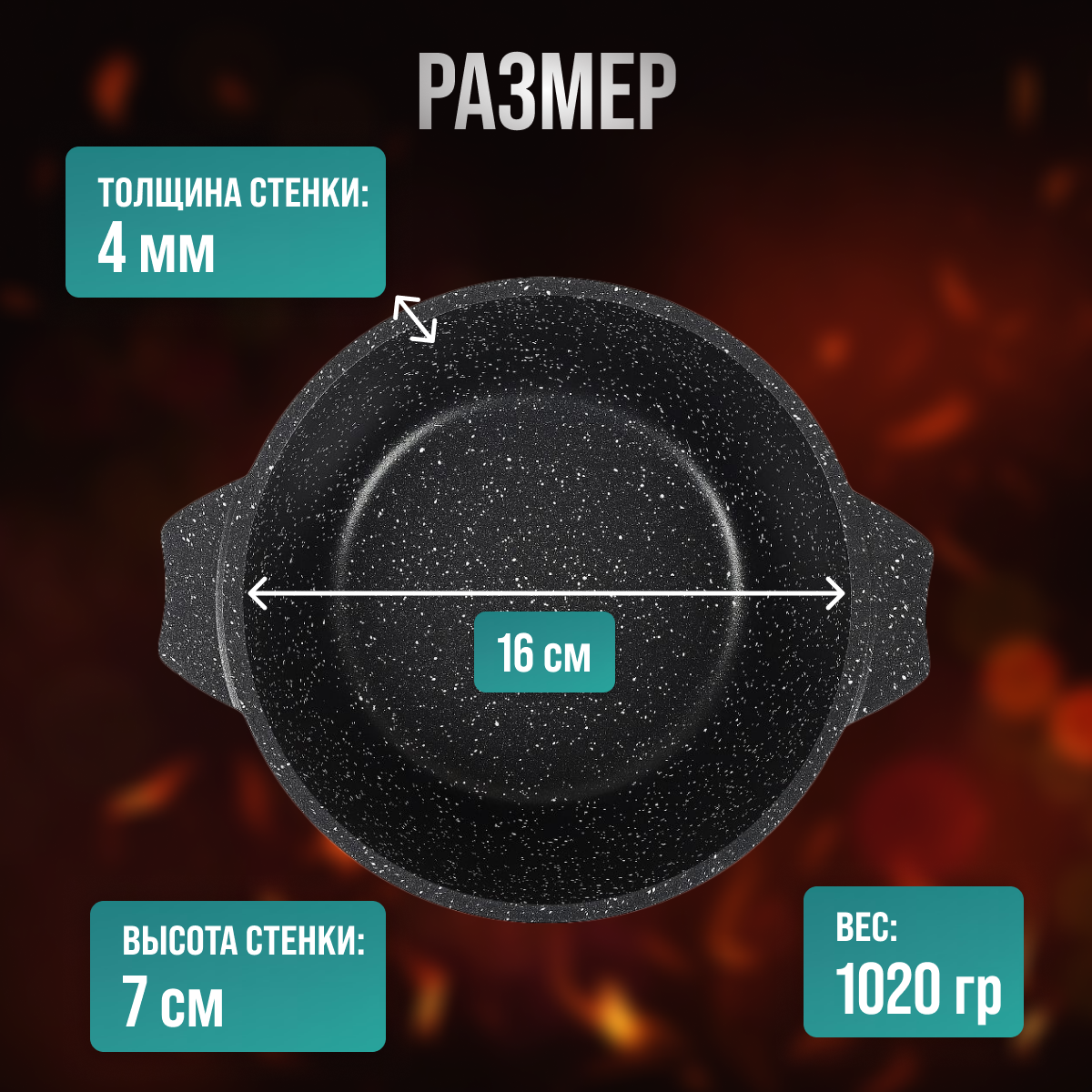 Кастрюля Мечта 1 л Гранит с антипригарным покрытием с крышкой, НЕ индукционная