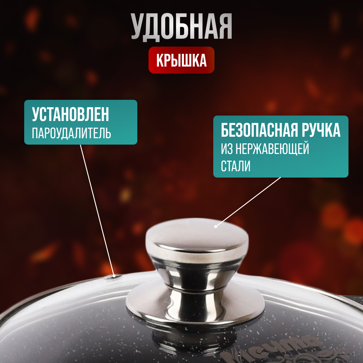 Кастрюля Мечта Гранит Black литая с антипригарным покрытием, со стеклянной крышкой, 6л, гранит black