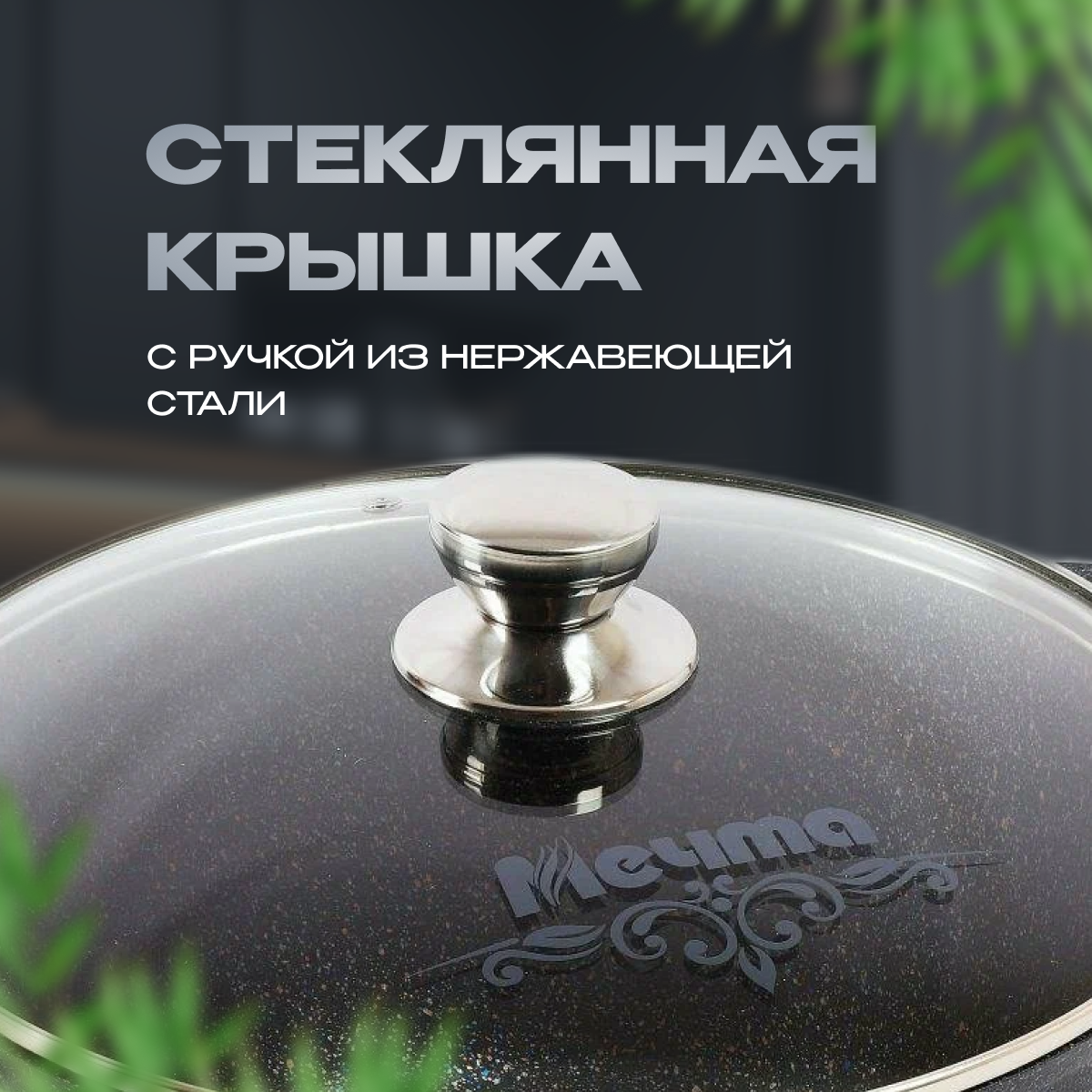 Кастрюля Мечта Гранит Black литая с антипригарным покрытием, со стеклянной крышкой, 6л, гранит black