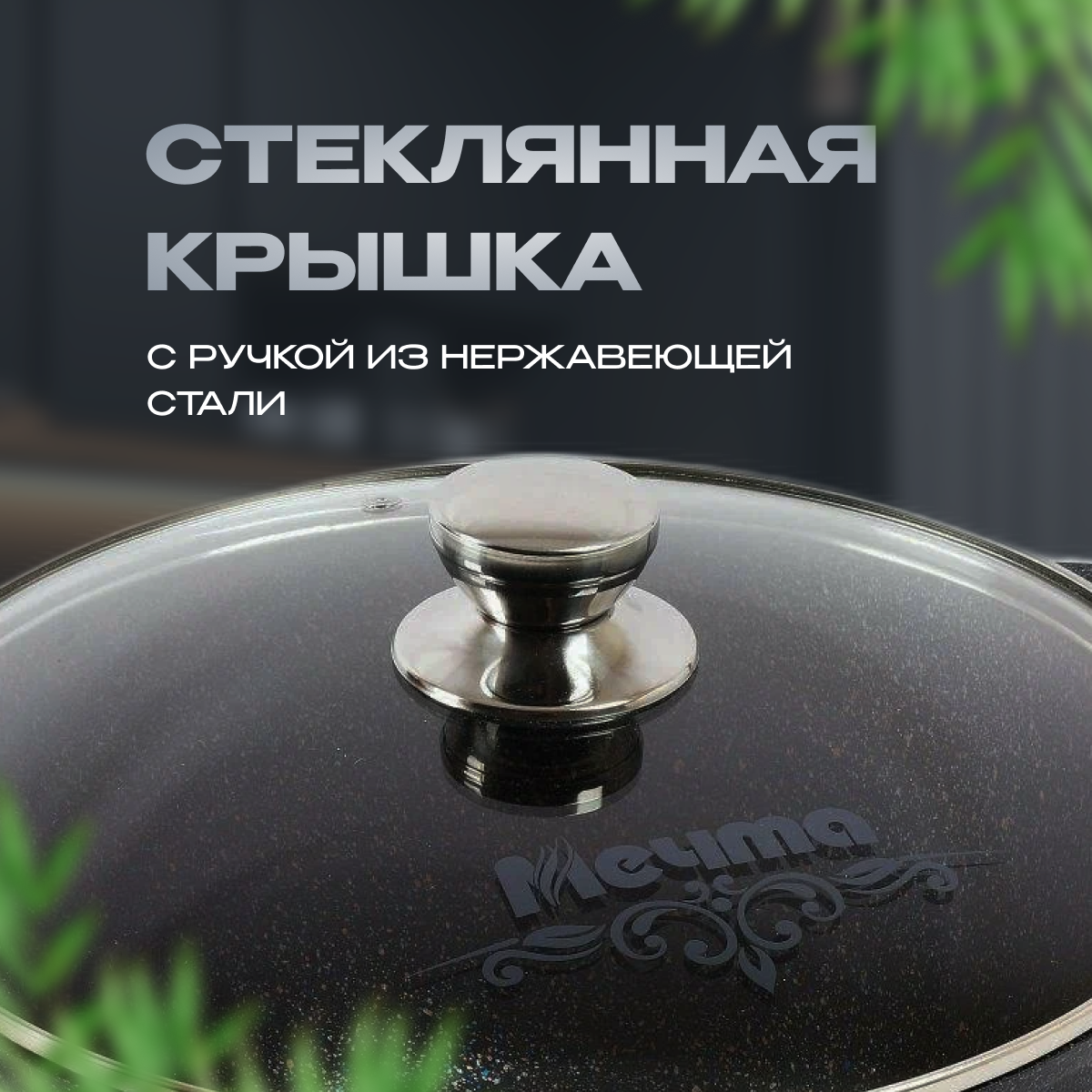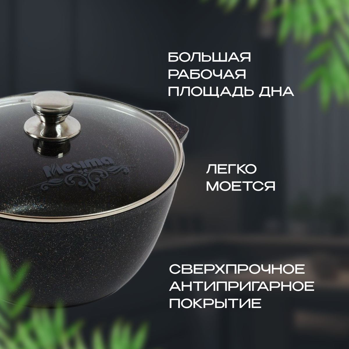 Кастрюля Мечта Гранит Black литая с антипригарным покрытием, со стеклянной крышкой, 6л, гранит black