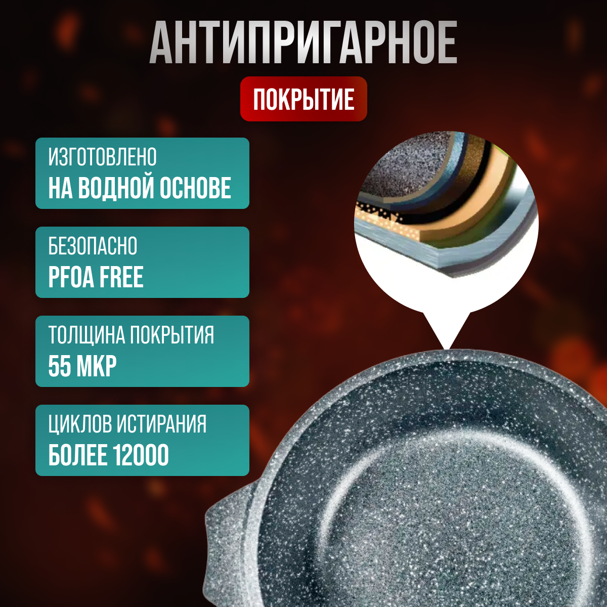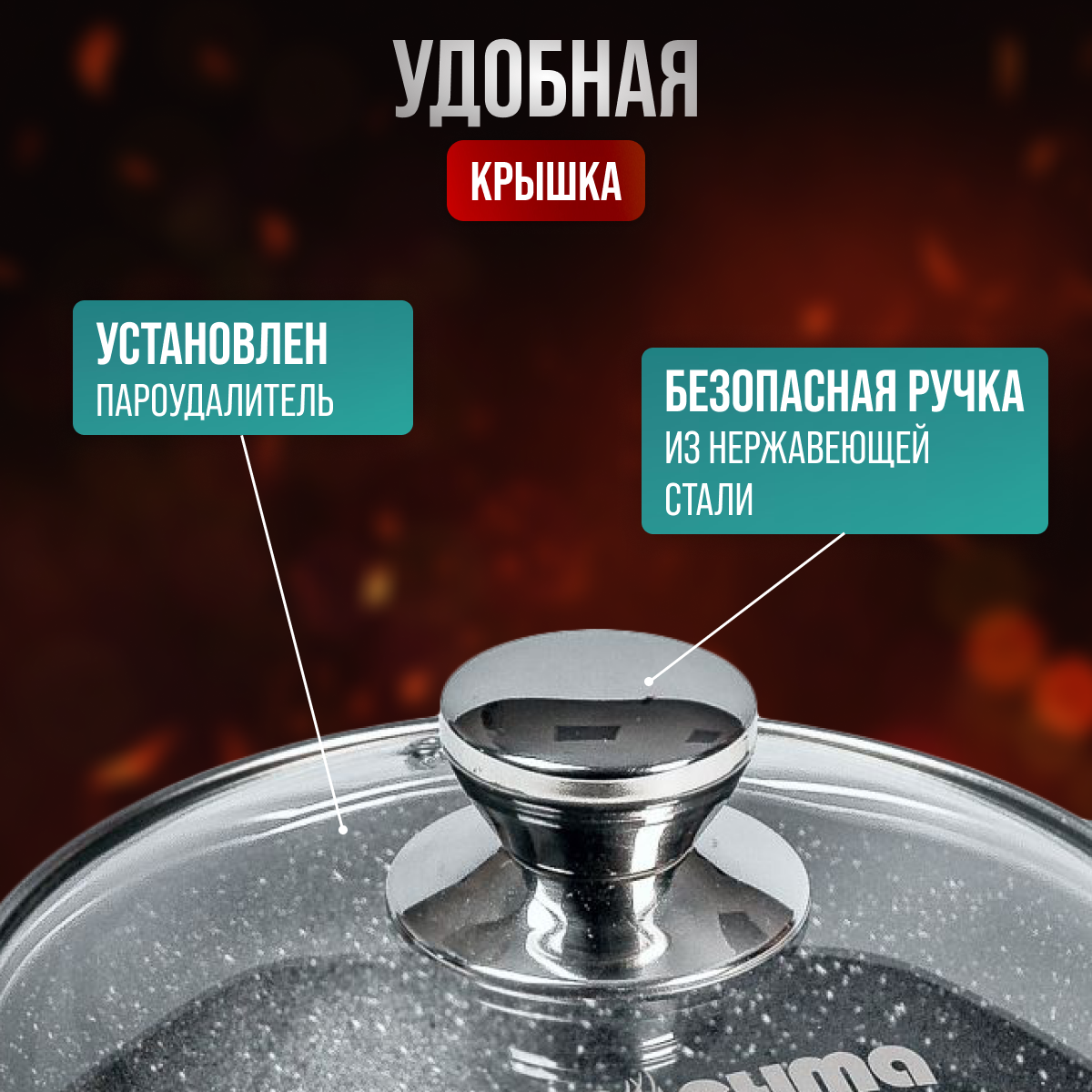 Кастрюля Мечта Гранит Black литая с антипригарным покрытием, со стеклянной крышкой, 6л, гранит black