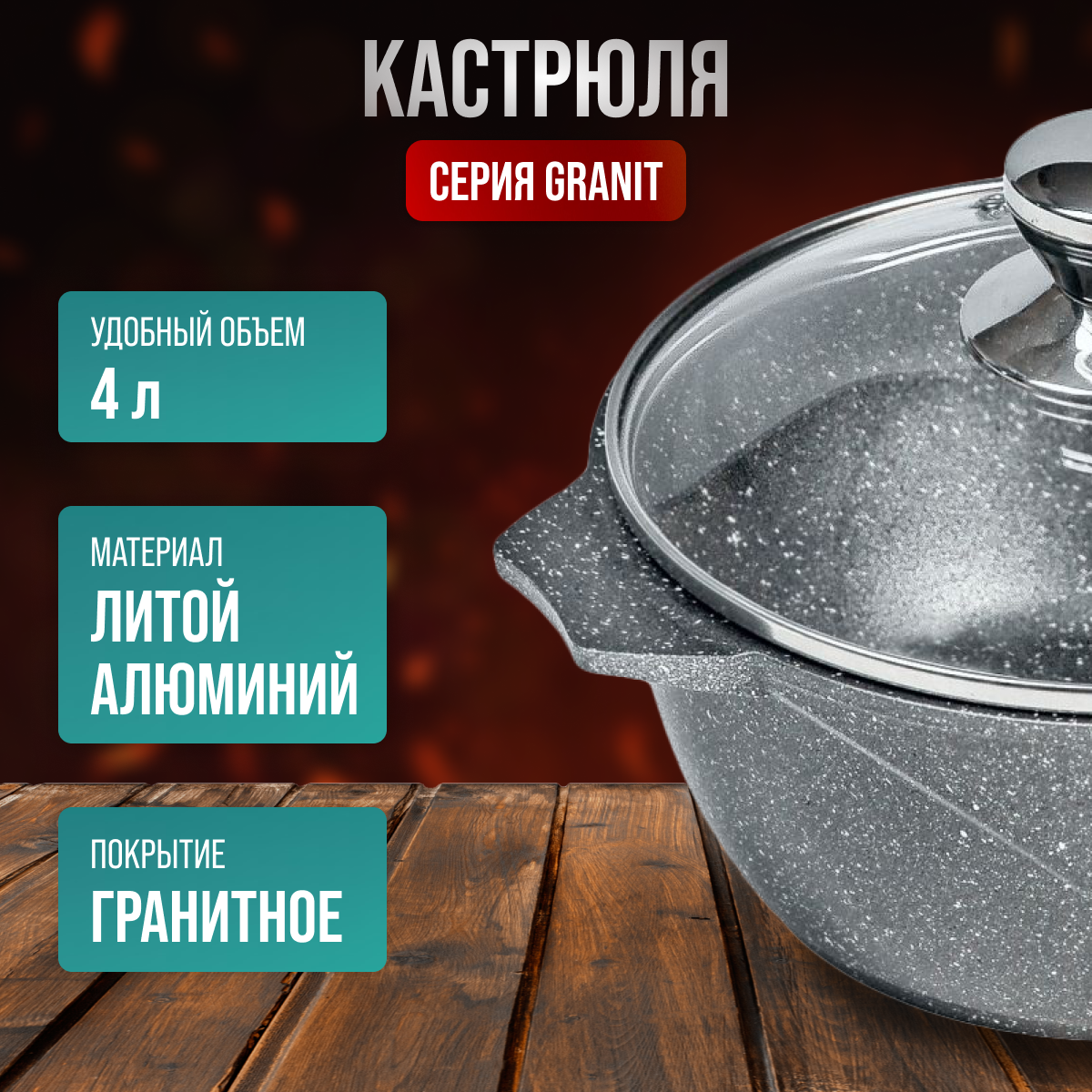 Кастрюля Мечта "Гранит", 4 л, стеклянная крышка